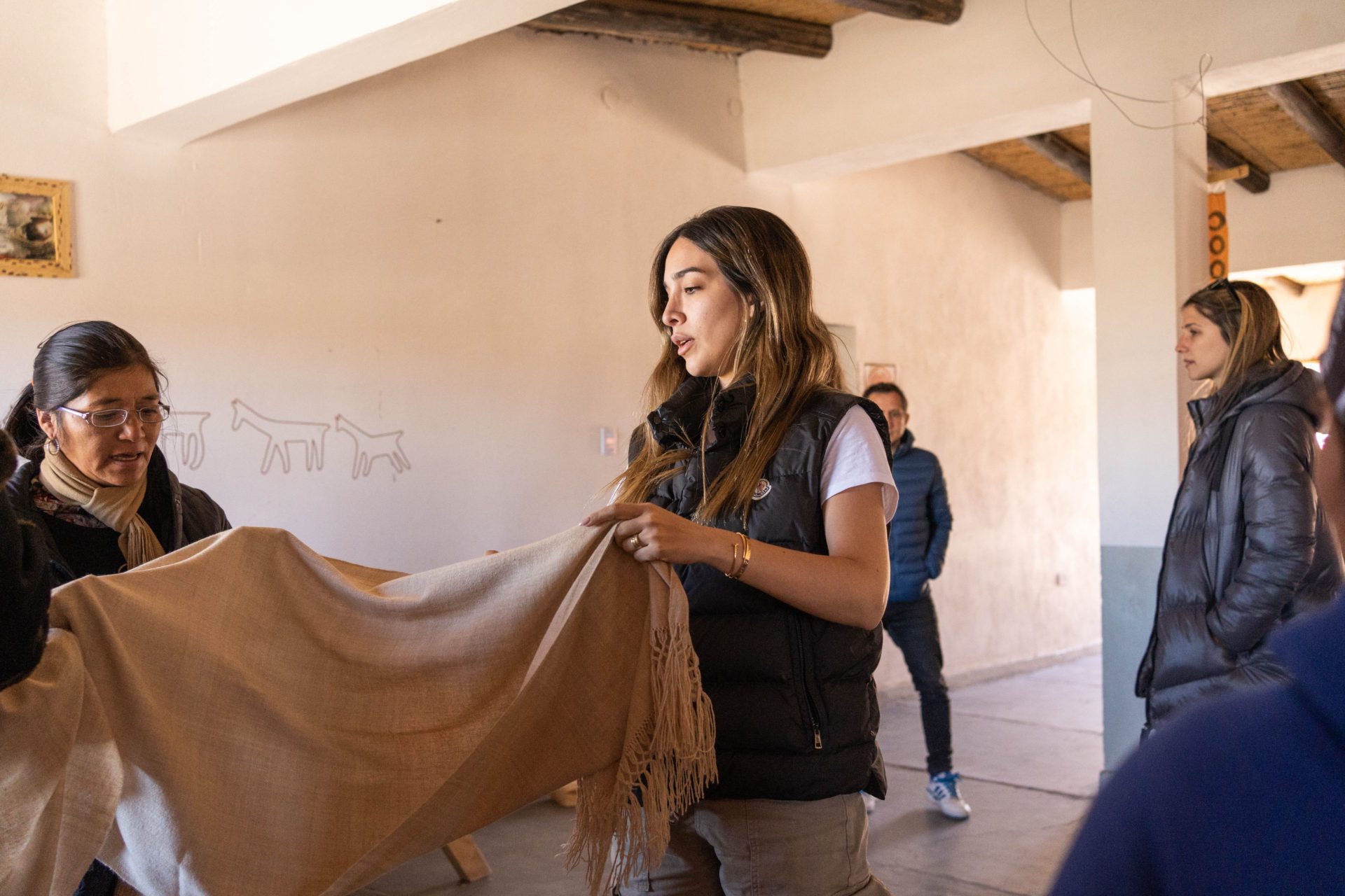 La joven empresaria remarcó ante el diplomático, la incorporación de tecnología blockchain como valor diferencial en las piezas, y la importancia de penetrar en mercados de lujo que hoy valoran lo natural, sustentable y artesanal. La práctica del tejido de vicuña se ha transmitido de generación en generación, convirtiéndose en el ADN cultural de Catamarca, cada artesana demora entre 6 y 12 meses de confección, lo que lo convierte en una pieza única, escasa y verdaderamente especial con altísimo valor en los principales mercados internacionales.