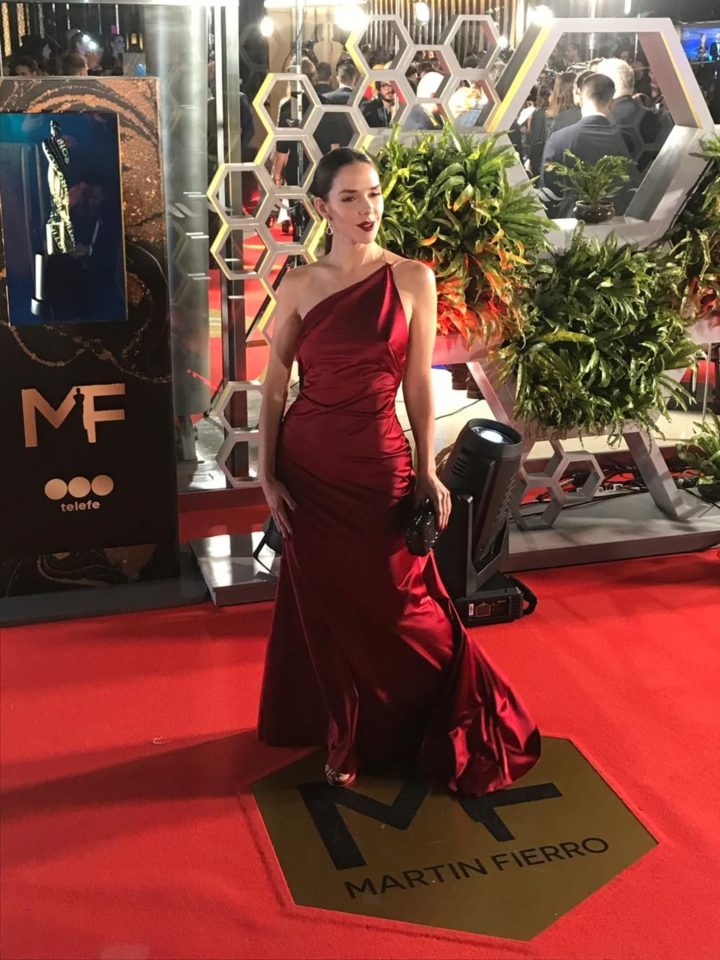 Fueron pocas las famosas que optaron por el color en la gala de los Martín Fierro: Julieta Nair Calvo lució vestido color borravino con un pronunciado escote en su espalda y Leticia Brédice remató su vestido con una extravagante capa roja.