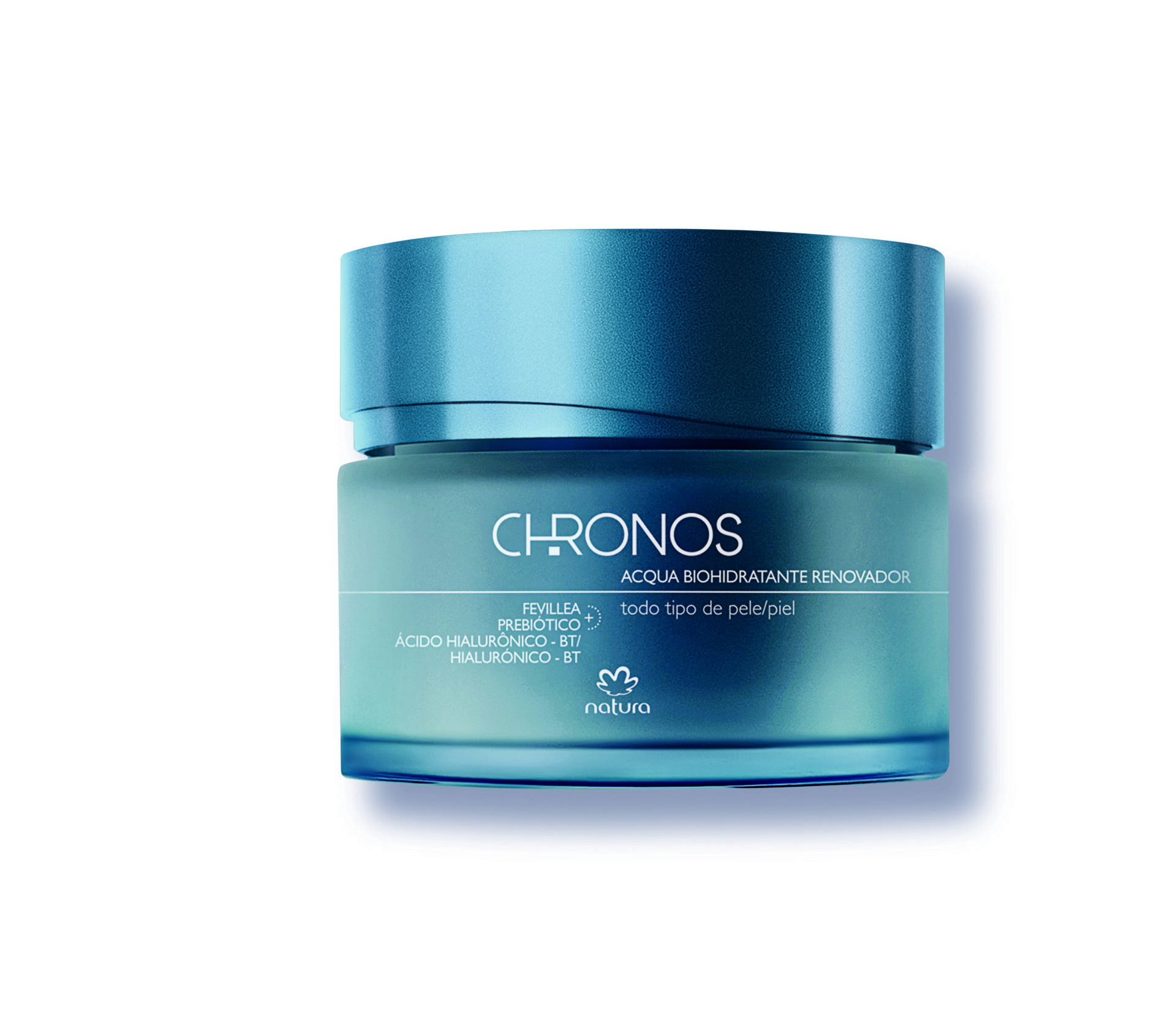 Natura Chronos Acqua biohidratante renovador (Precio desde $11.772): El Chronos Acqua Biohidratante posee una fórmula ligera, refrescante, ultra hidratante y que penetra rápidamente en la piel. Su exclusiva tecnología de hidratación activa, prebiótica e inteligente, estimula los 5 mecanismos de autohidratación de la piel, manteniendo el equilibrio de la microbiota y reparando los niveles de hidratación de acuerdo a la necesidad de cada región del rostro. Posee Fevillea, Prebiótico y Ácido Hialurónico. Producto vegano con repuesto.