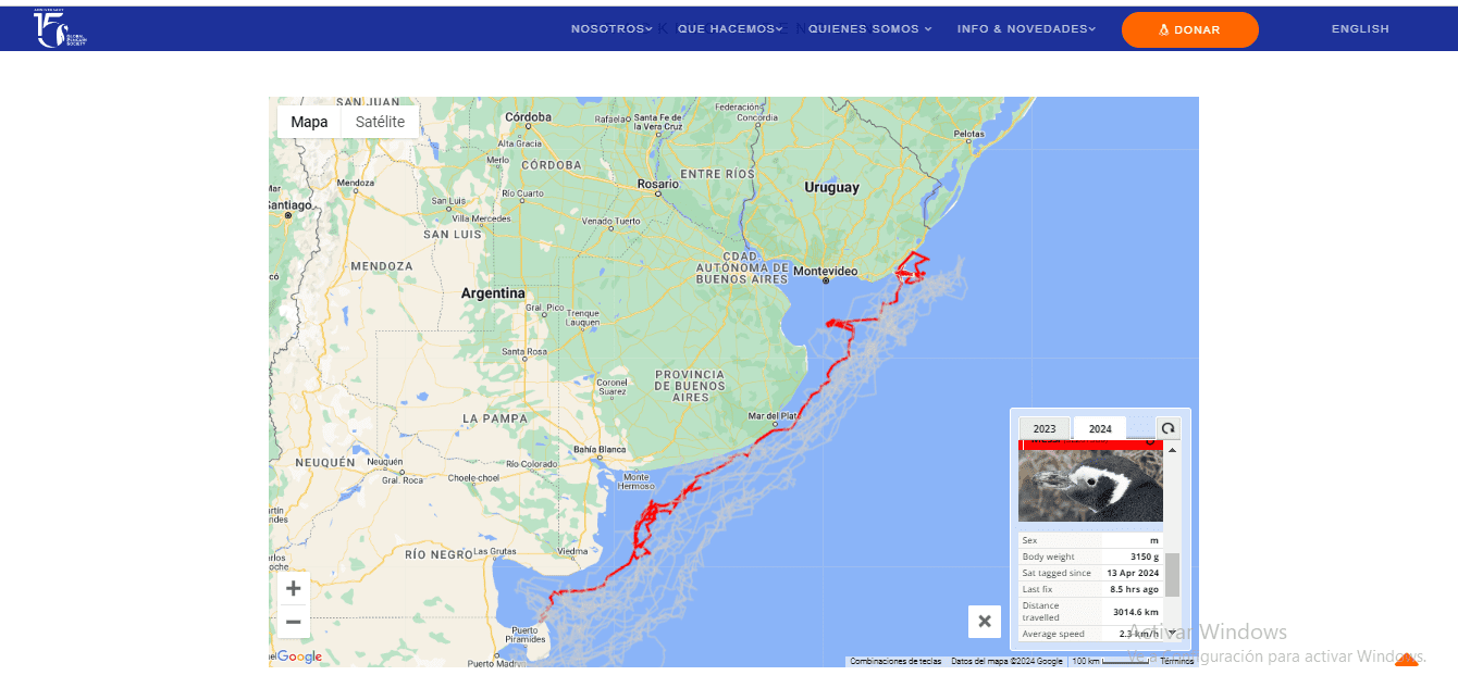 En el marco de una investigación que busca comprender mejor la biología y ecología de los pingüinos de Magallanes, y gracias a la colaboración de diversas instituciones y al apoyo de National Geographic Society y del Fondo para la Conservación de Disney, Global Penguin Society (GPS) equipó a 20 pingüinos con transmisores satelitales, permitiendo el seguimiento de su migración invernal desde la Patagonia Argentina hasta las costas de Brasil.