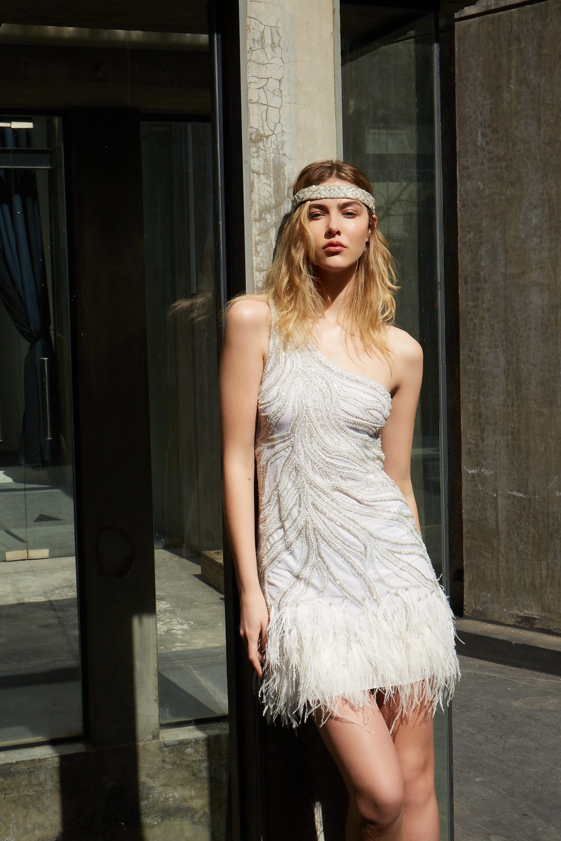 Con diseños para novias y para fiestas, la propuesta de esta colección abarca vestidos con capas, tops, faldas, monos y sastrería, que combina con detalles como bordados y mix de telas dirigidos a una mujer sofisticada, sensual, moderna y canchera. Son 40 prendas en las que el diseño y el arte están en cada pliegue, en cada costura y en cada detalle para dar vida a un atuendo deslumbrante.