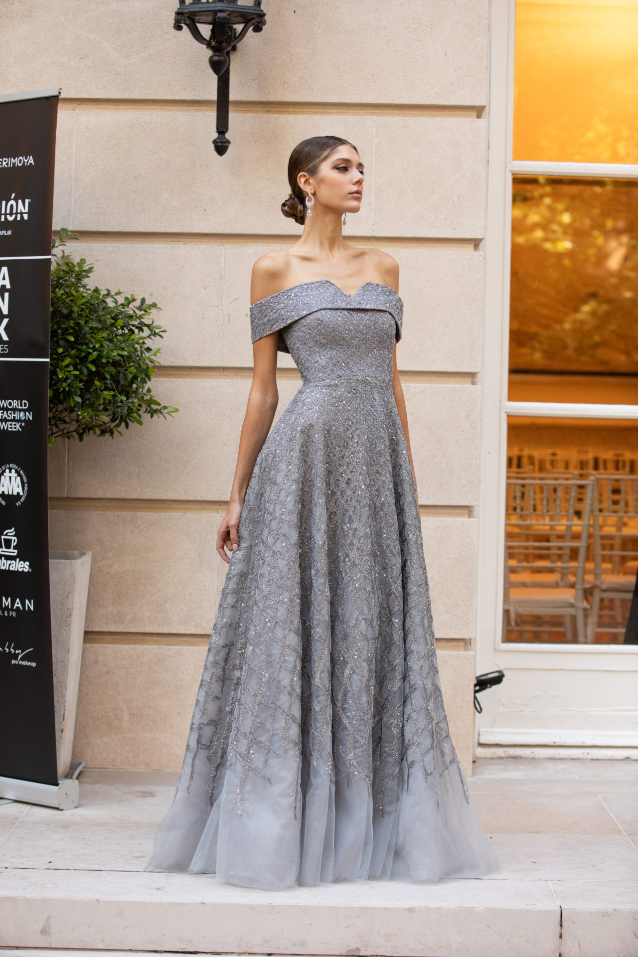 Tejidos tecnológicos, seda, cristal, cinturas de avispa, hombros marcados y un glamour que recuerda el viejo Hollywood inundan esta muestra que el diseñador y su equipo trasladan desde el otro lado del Atlántico.