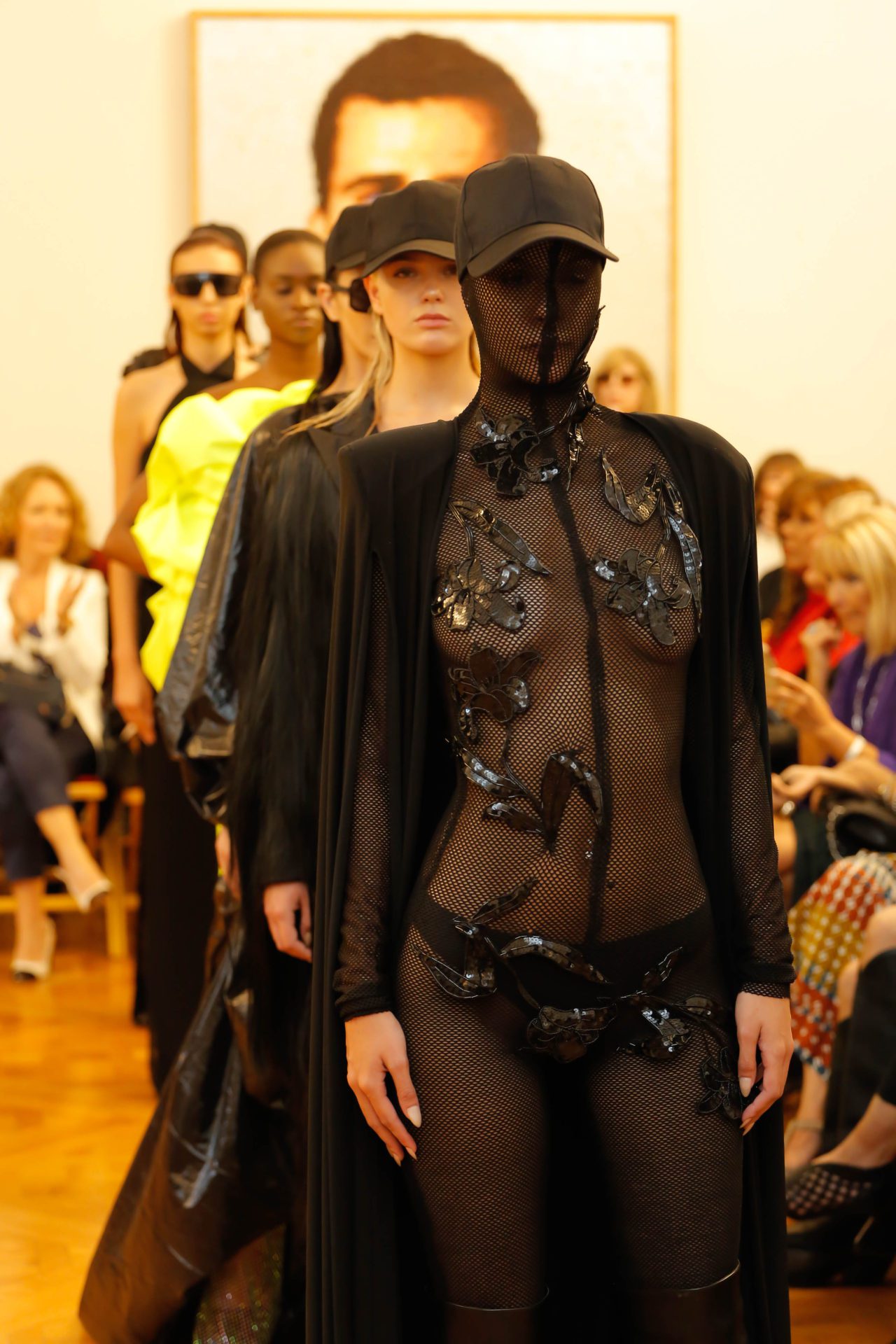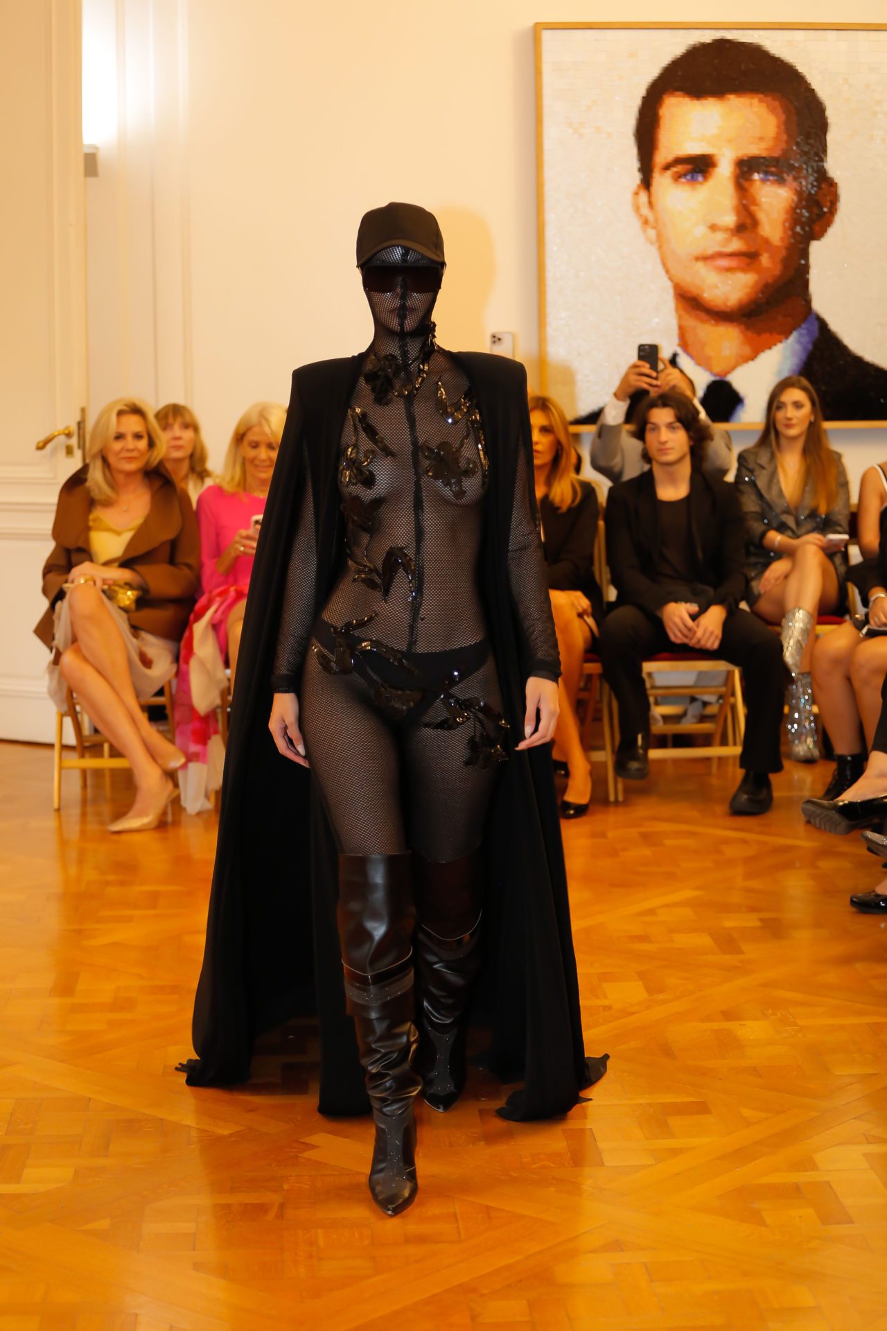El diseñador presenta en quince looks su ADN en una colección tenida de negro, color fetiche del diseñador en la que se podrá observar su pasión por los volúmenes, la historia de la moda, haciendo guiños a gran Cristóbal Balenciaga y a Monsieur Dior, pero con el toque oscuro y un tanto escandaloso de uno de los diseñadores más transgresores, pero a la vez más elegantes del panorama español.