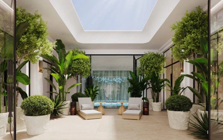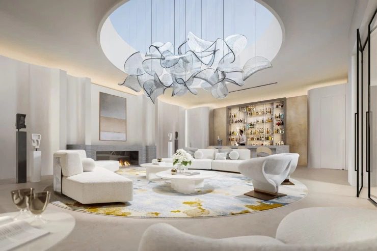 Diseñado por el renombrado arquitecto Marc Prigent, creador de algunos de los espacios interiores más lujosos del mundo para renombrados hoteleros como el Ritz-Carlton y el Four Seasons, tiene jardín subterráneo, piscina, spa, cine, bodega, además todas las comodidades y lujos posibles.