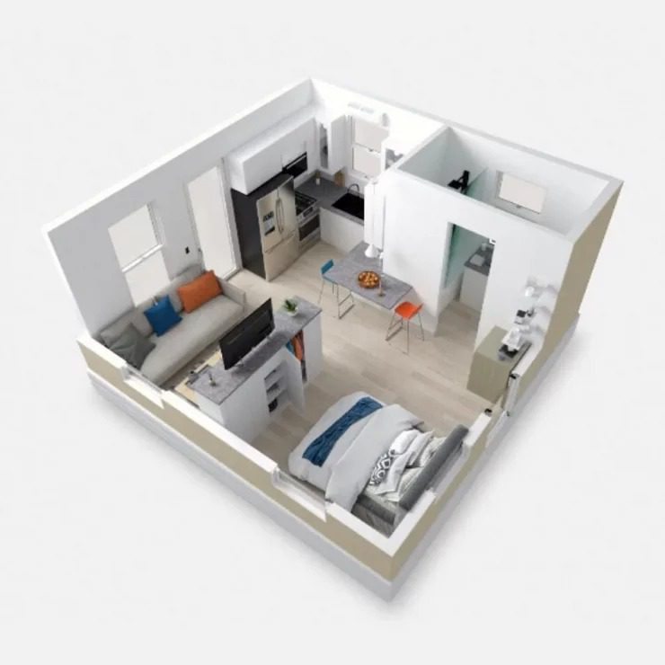 ‘Boxabl Casita’ se instala en tan solo una hora a través de una tecnología patentada y de última generación. Puede construirse para vivir fuera de la red eléctrica o viene preparada para conectarse a los servicios públicos.
