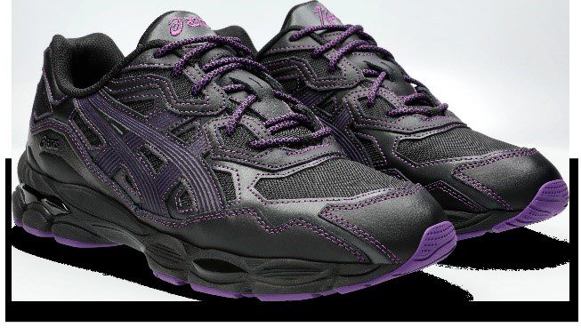Detalles como el nombre de la mariposa NEEDLES bordado en el talón. Además, GEL-NYC™ se presenta con una paleta de colores negro y morado para reflejar los colores de la marca NEEDLES. Los logotipos en las lengüetas. Finalmente, el calzado también viene empaquetado en una caja personalizada que rinde homenaje a los diseños de pantalones NEEDLES.