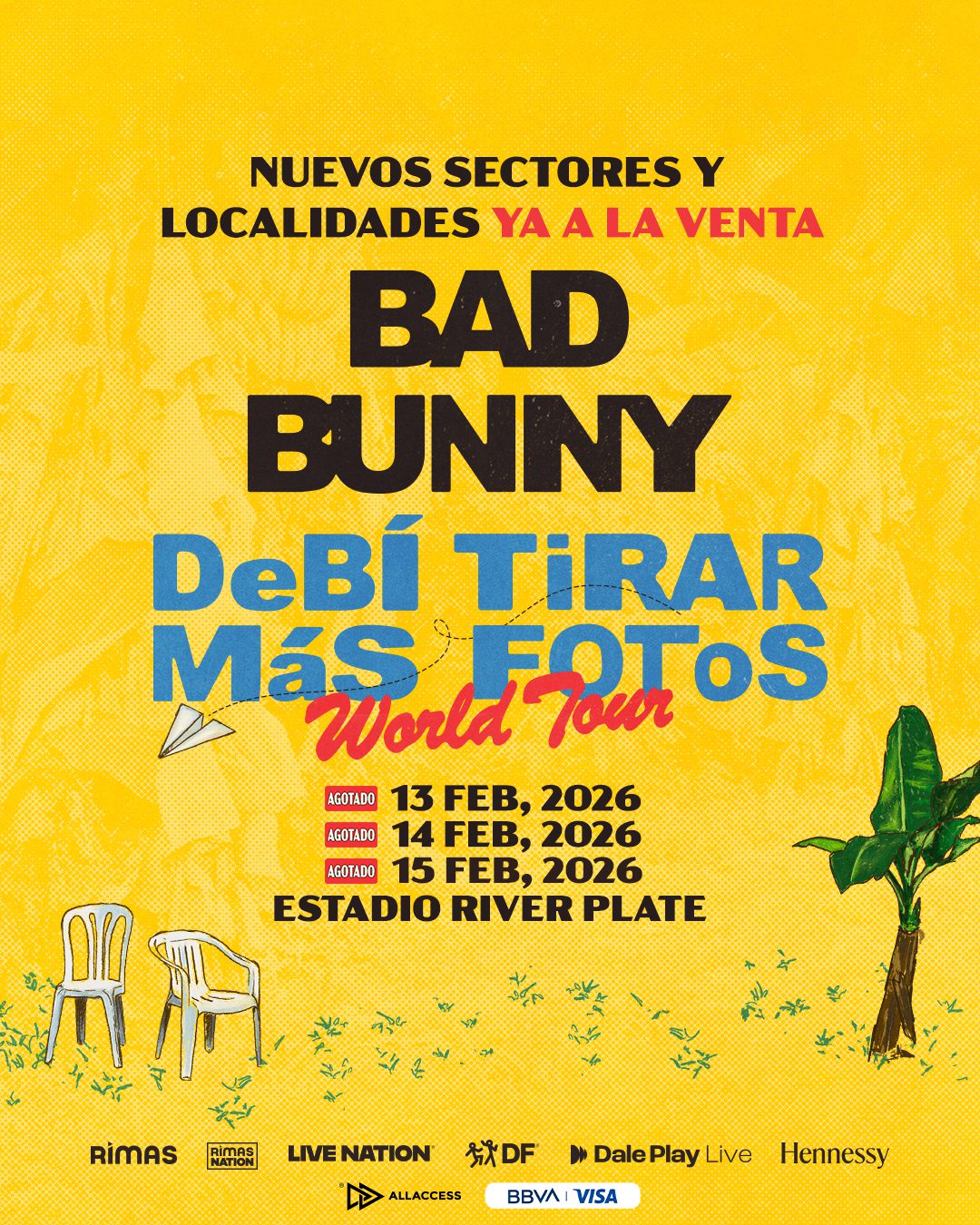Como parte de este histórico tour Bad Bunny visitará la Argentina con tres fechas confirmadas los días 13, 14 y 15 de febrero. Debido a la configuración del show se habilitan nuevos sectores como Los Vecinos, Stage A y B, y además se podrán adquirir entradas en todas las ubicaciones para sus tres presentaciones desde el lunes 26 de enero a las 12 hs con una preventa exclusiva de 12 cuotas sin interés para clientes BBVA con tarjetas Visa.