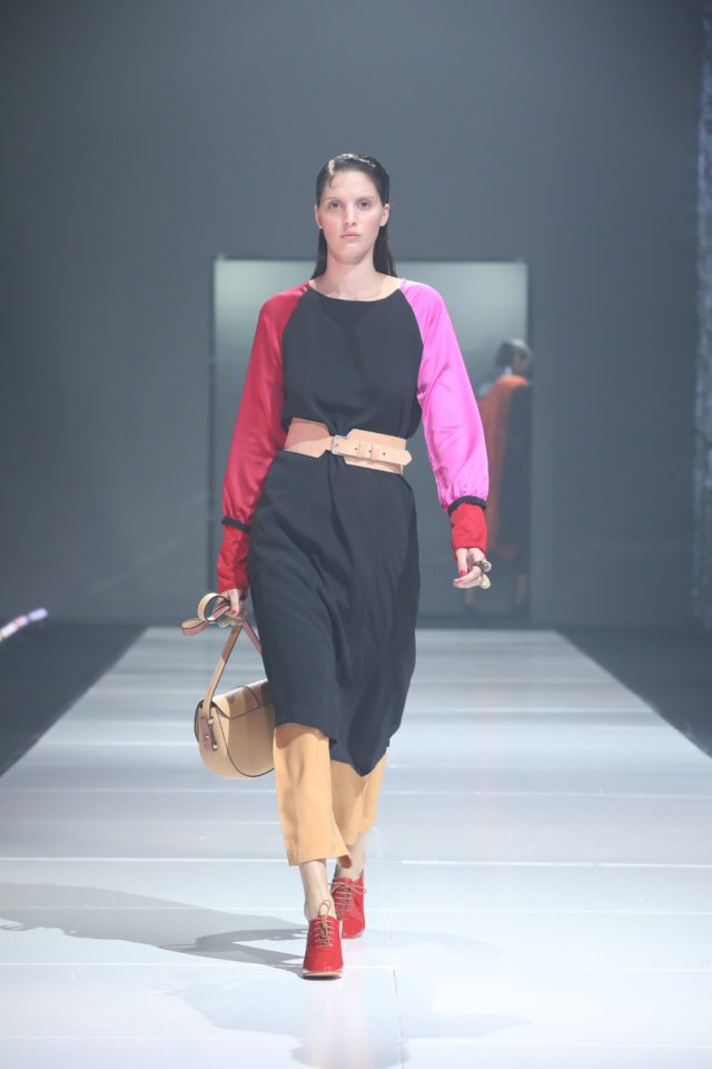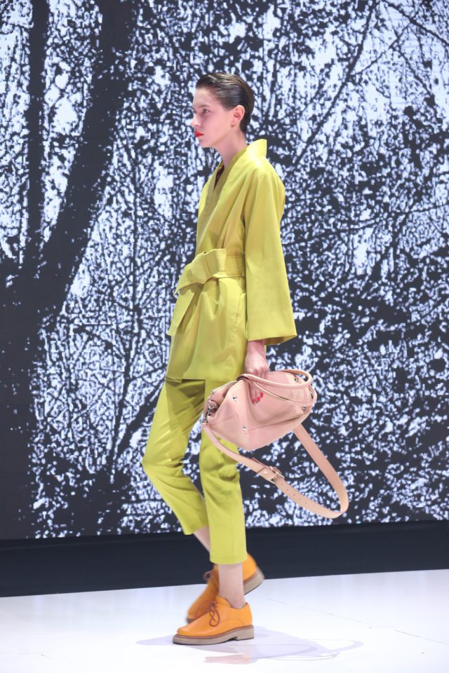 Los elementos que utilizamos para dar un golpe de color, de idea, de fantasía, fue combinar las épocas. Otra de las características, fue que trabajamos mucho sobre los zapatos con aires arquitectónicos. Hubo tacos de madera, de acrílico y de formas variadas pero que no dejan de resaltar la línea pura de mucho color.