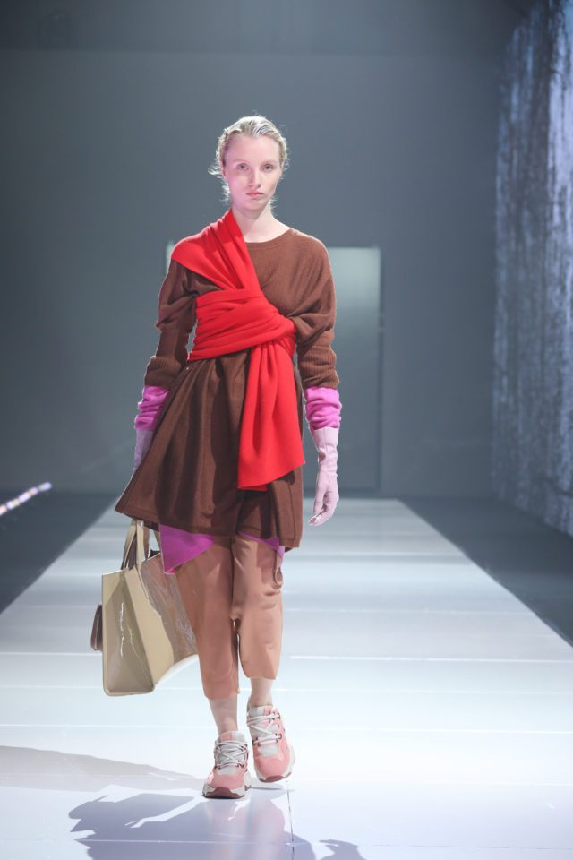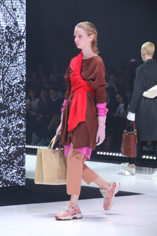 Lo que hicimos con Mishka es rescatar el color, ya que siempre se manifiesta muy fuerte en todas las colecciones. Para esta temporada invierno, trabajamos sobre una paleta de colores muy saturados que fue pasando por el verde flúor, el coral, los violetas, magentas y muchos más. Todo eso se fue mezclando con grises y con azul eléctrico que tiene una gran presencia en invierno. Para abrir los looks, partimos de los colores creando bloques y logrando un desfile de 36 pasadas. También incorporamos hombres, donde utilizamos prendas unisex y un poco de estilismo para superponer rastros de diferentes épocas. Por ejemplo, combinando bloques de color de los años 60 con la época punk a través de las crestas en el cabello.