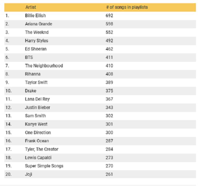Un estudio realizado por el portal Uswitch analizó datos de diferentes listas de Spotify. Con estos datos determinaron que los temas de Billie aparecían en 692 playlist creadas y recomendadas para escuchar mientras los usuarios se bañan.