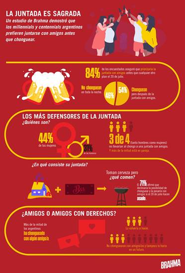 ¿Y cómo se componen estas famosas juntadas? Siempre incluye cerveza, pero lo que inclina la balanza entre los indecisos es el plato fuerte: en el caso de haber asado con amigos, el 71% declinaría la posibilidad de chonguear y pasaría está fecha especial con su grupo.