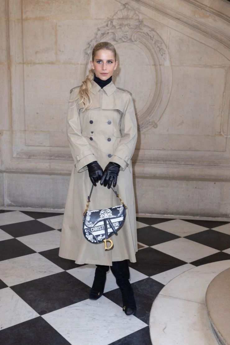 Por su parte, la influencer Caroline Daur, adoptó un clásico trench que lo combinó con la icónica cartera de la maison.