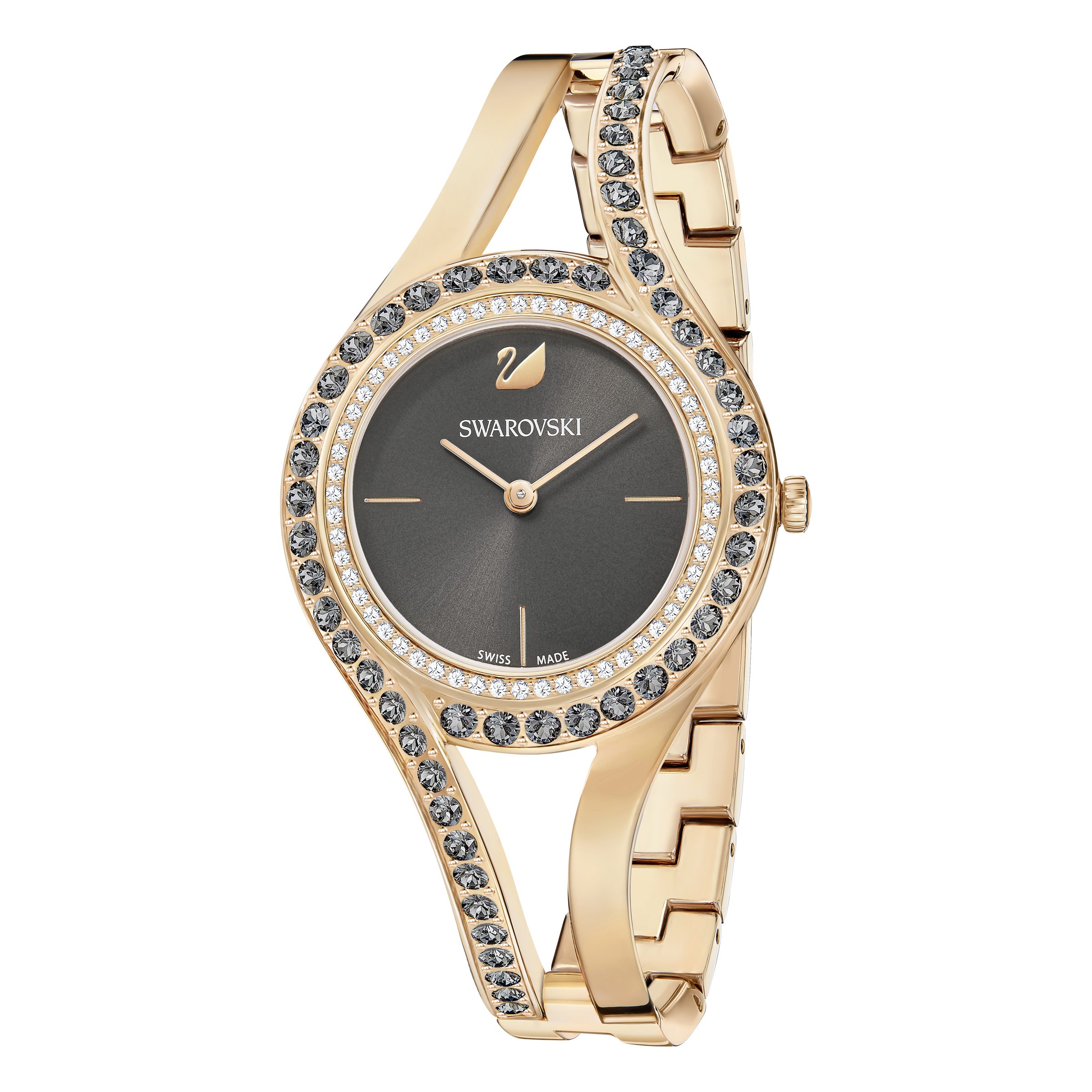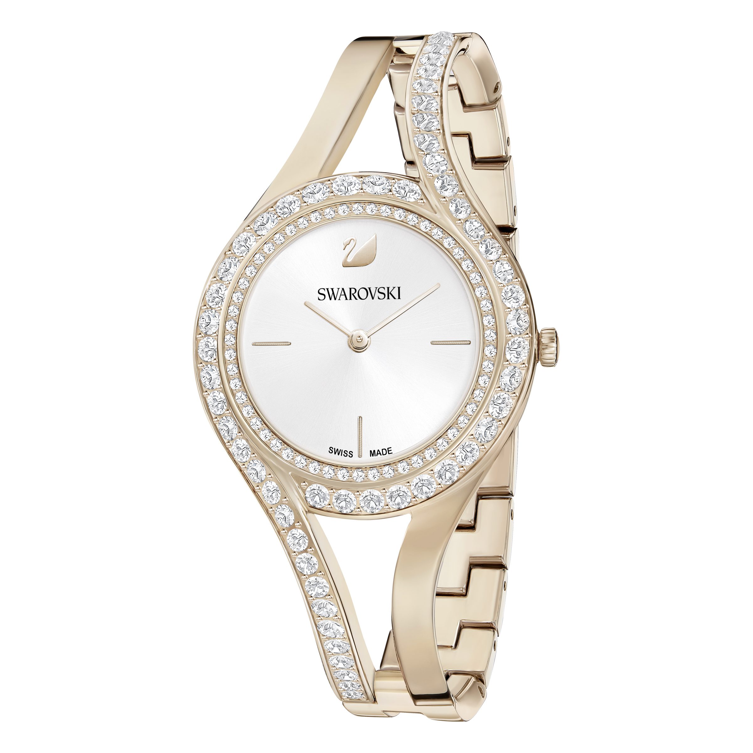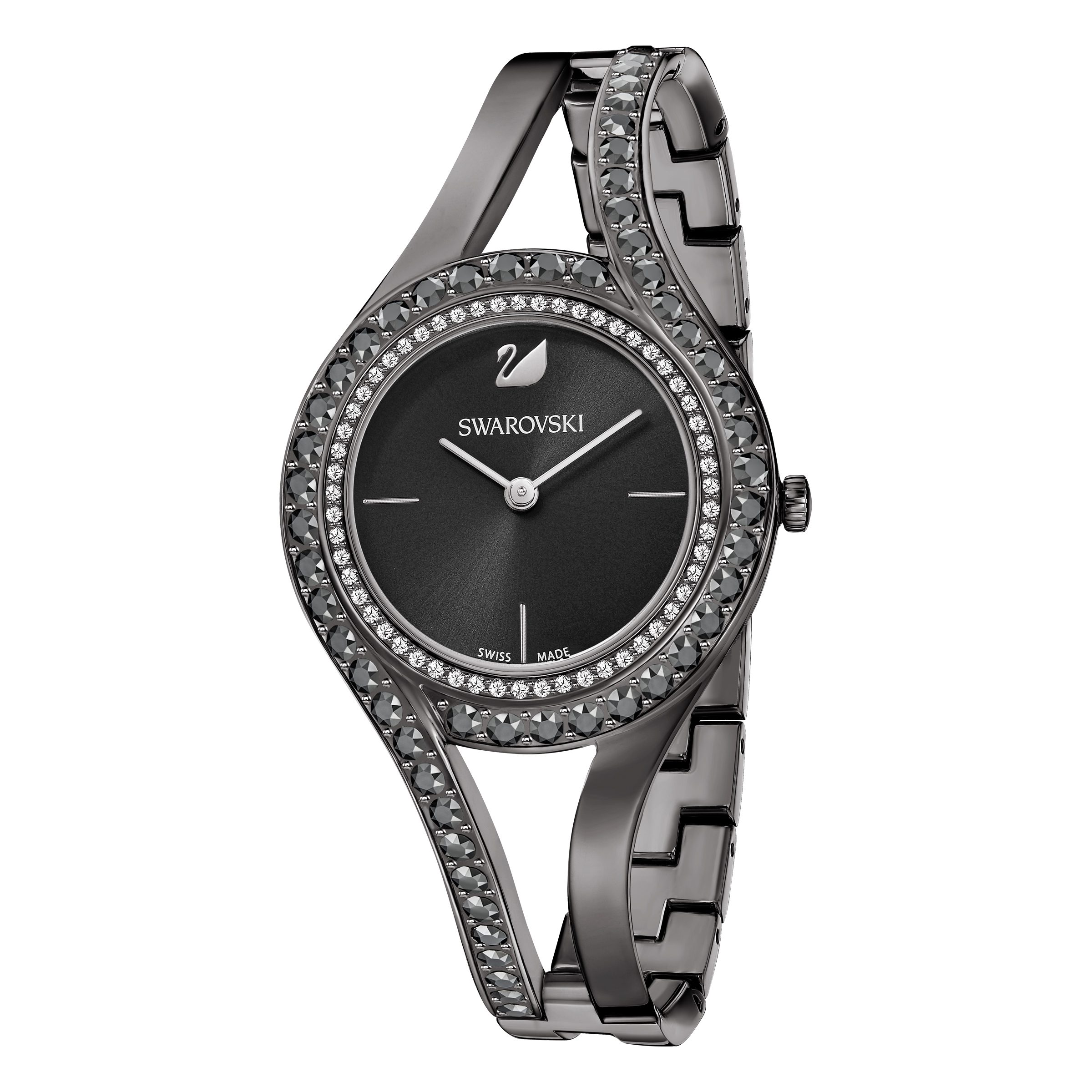 Este reloj de estilo contemporáneo desdibuja los límites entre la bijouterie y la relojería con sus brillantes detalles en doble pavé de cristal de Swarovski en la esfera, y elegantes cortes asimétricos en la correa de la pulsera.