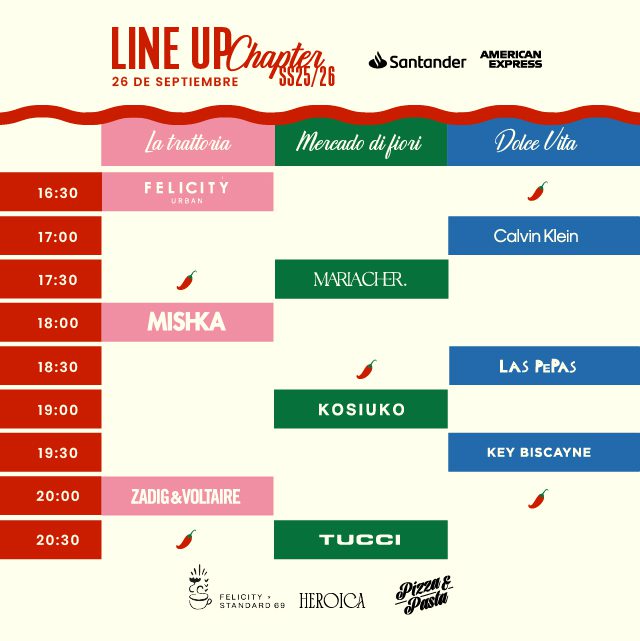 A partir de las 16hs, los pasillos se convertirán en un escenario inspirado en la isla más grande del mediterráneo en donde las primeras marcas demostrarán sus icónicos looks de esta temporada. Las marcas participantes serán Zadig & Voltaire, Felicity Urban, Mishka,María Cher, Kosiuko, Tucci, Las Pepas, Calvin Klein y Key Biscayne.