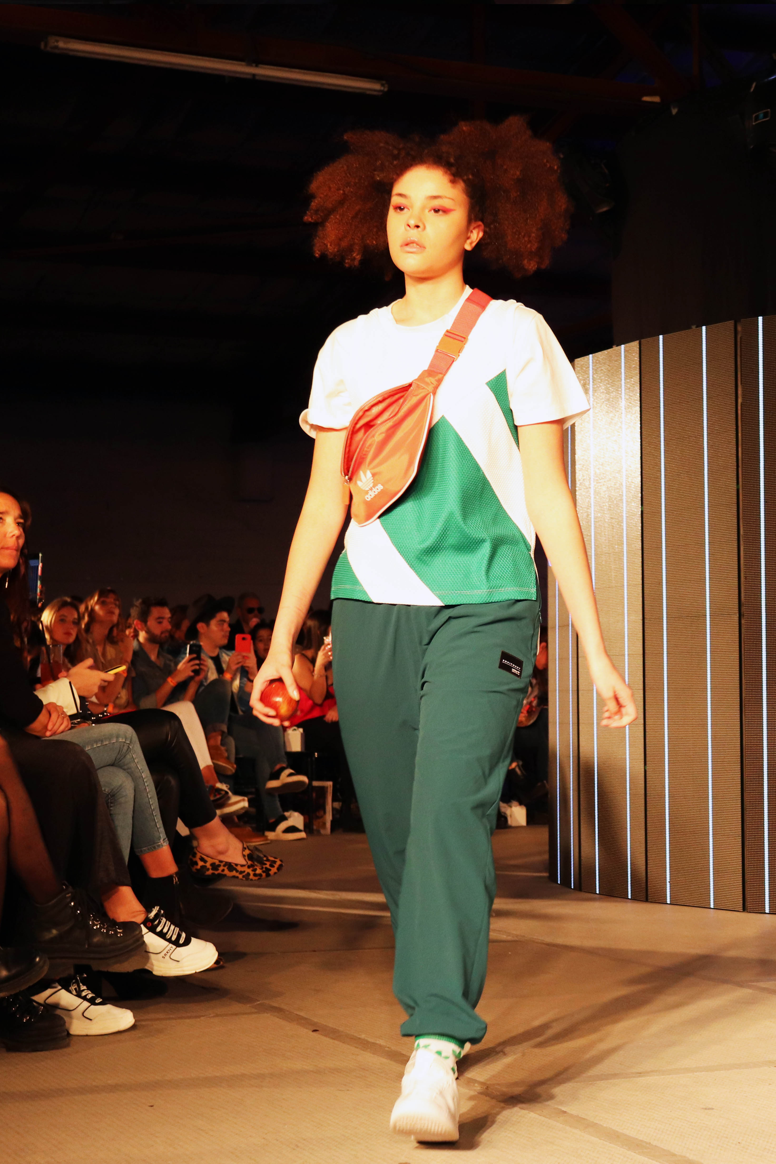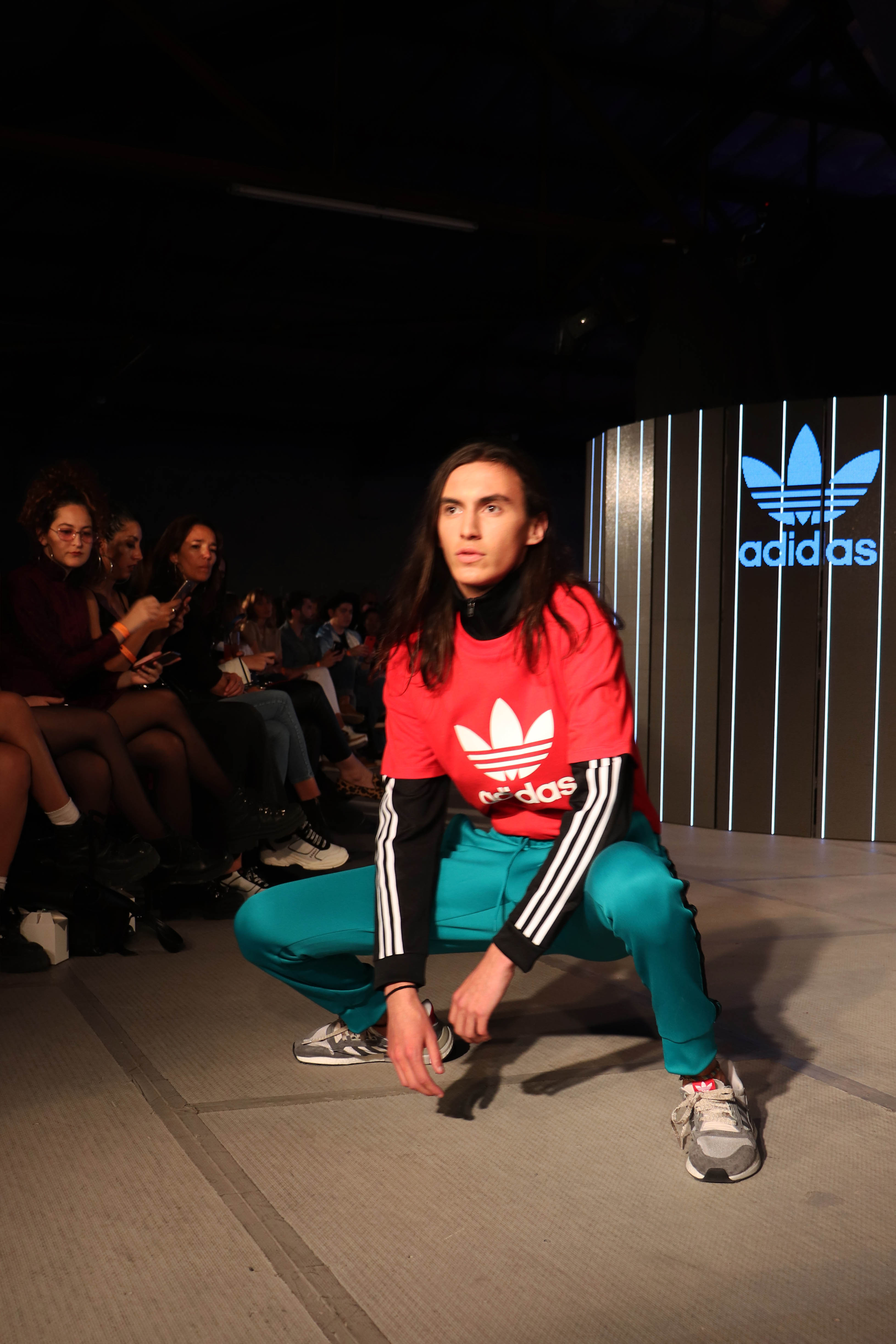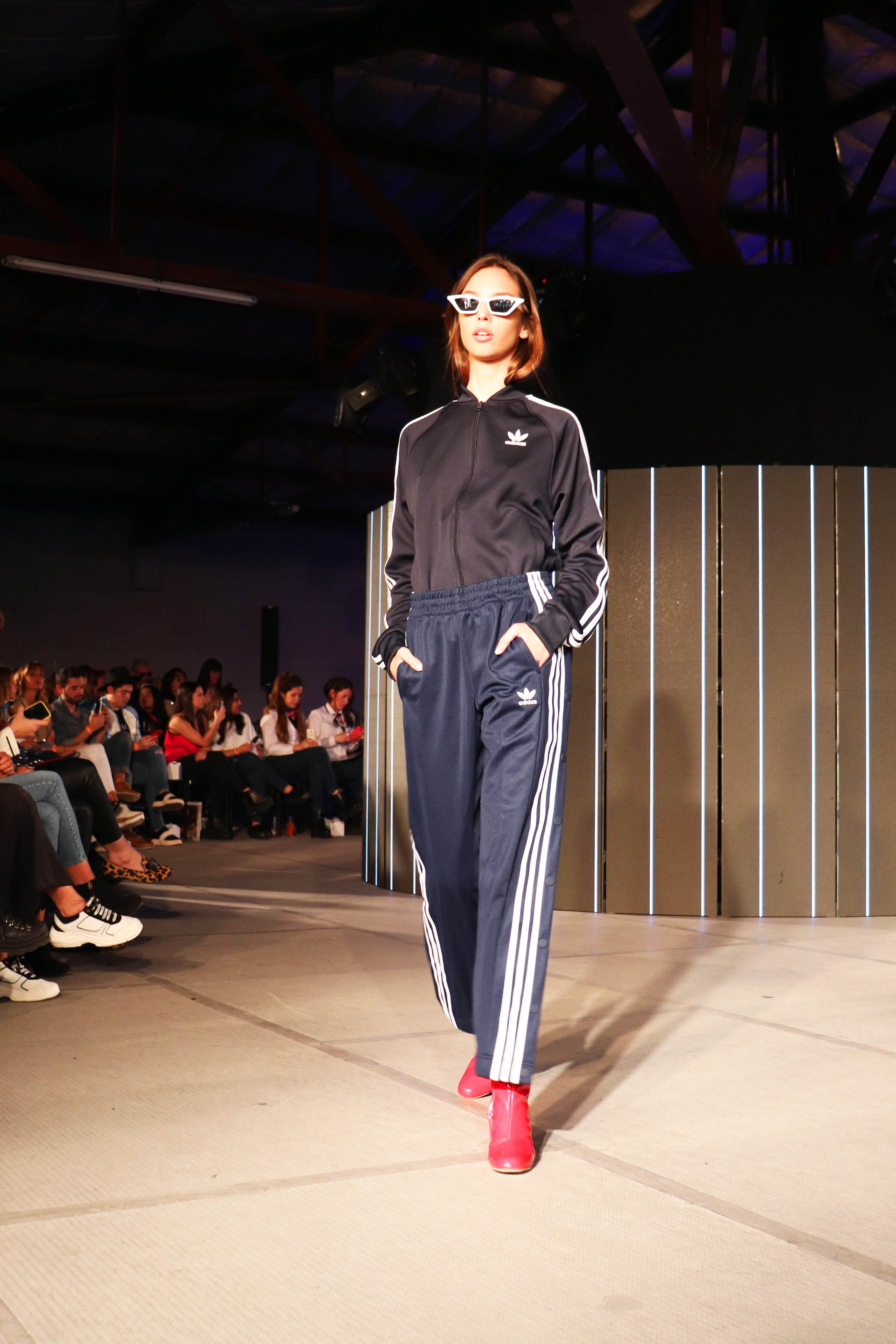Adidas abrió la pasarela e impuso un aire juvenil y fresco. Las prendas marcan una vuelta a los clásicos, las remeras con logos grandes, las zapatillas deportivas estilo bota, los pantalones deportivos, los conjuntos de ropa con las reconocidas rayas a sus costados y, por supuesto los accesorios típicos, lentes y gorras.