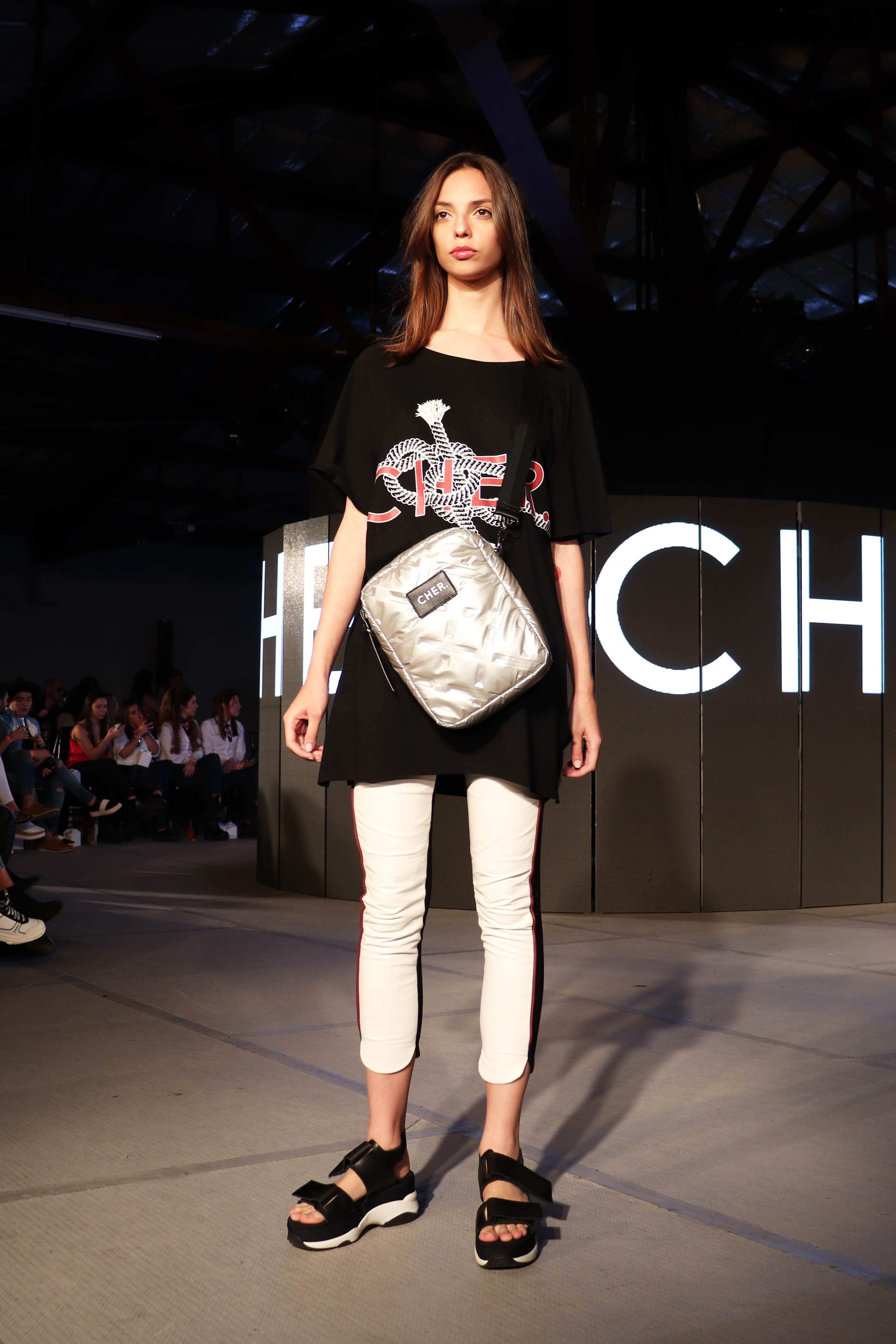 El desfile «Círculo Moda» lo cerró CHER, que para esta temporada opto por un estilo más urbano y casual. Las remeras de algodón estampadas, las rayas en los trajes y vestidos, el cuero en camperas, pantalones y polleras es la propuesta de la marca. En esta oportunidad se destacó el negro.