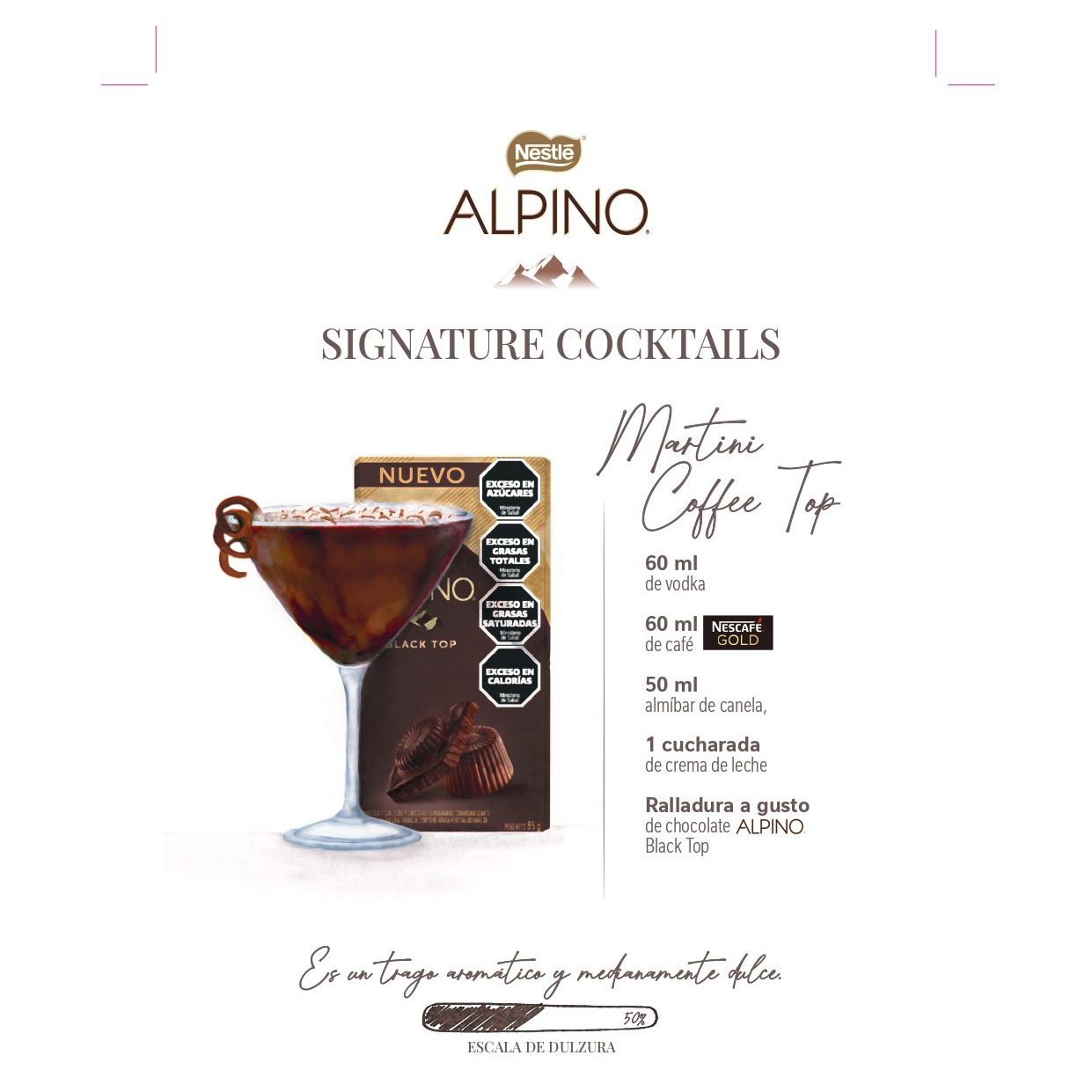 En el marco del Día del Cóctel, NESTLÉ® invita a explorar nuevas fronteras de sabor con dos tentadores cócteles inspirados en el exquisito chocolate ALPINO®, que cuenta con una exclusiva receta alpina suiza y se destaca por su sabor único. Es una experiencia multisensorial que, además, tiene un molde único “envuelto en oro”.