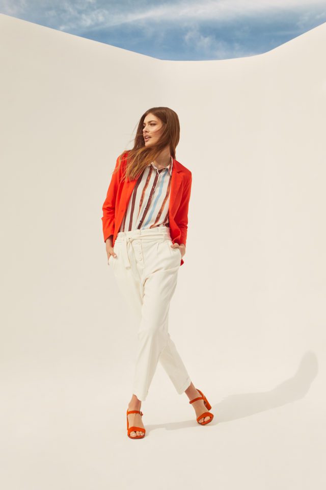 En lo que respecta a tipologías, la colección se compone de conjuntos sastreros, vestidos en clave midi y corto, blusas y camisas de diversos tipos, pantalones, bermudas, entre otros.