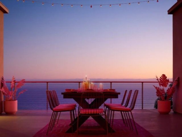 La casa de estilo contemporáneo ubicada frente al mar, presenta detalles característicos de Barbie, complementados con una combinación de piezas modernas y vintage de mediados de siglo. Como parte de la estadía, Barbie invita a sus huéspedes a explorar su vestidor y recorrer los 60 años de moda que reflejan sus exitosas carreras.