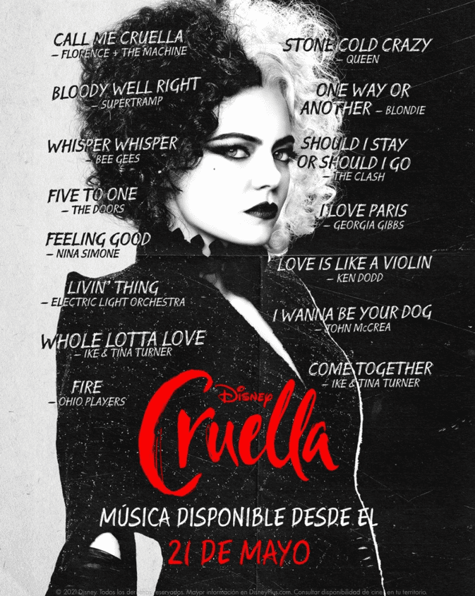 El pasado 28 de mayo estrenó en todo el mundo CRUELLA y el público ya está disfrutando de la nueva película de acción real de Disney que revela el origen de una de las villanas más icónicas de todos los tiempos, ya sea en salas de cine disponibles y en Disney+ a través de Premier Access. Protagonizada por Emma Stone, el film no sólo está conquistando a los fans con una historia intrigante y un vestuario increíble, sino que además está dando de qué hablar en materia de música.