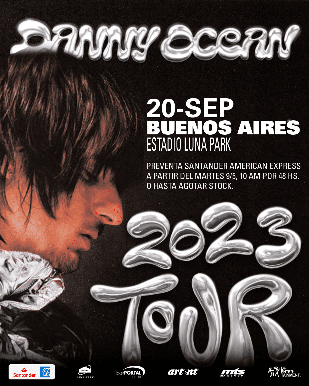 “Y no me importa de qué lado esté en este momento el p*** destino”, así como escribí esta canción, yo mismo me lo escribo” dice Danny Ocean en su último lanzamiento junto a Alejandro Sanz. Ese destino lo tiene en la cima del éxito, y, por suerte, con varias oportunidades de disfrutarlo en vivo en Argentina. Tras dar un show memorable en la Lollapalooza 2023, los fans soñaban con verlo en un show individual. La espera del anuncio terminó, porque el show de Danny Ocean ya tiene fecha: será el 20 de septiembre en el estadio Luna Park, con producción de DF Entertainment. Las entradas saldrán a la venta primero en una etapa de preventa, mañana martes 9 de mayo a partir de las 10 am, pasando después a la venta general (al agotarse la preventa o post 48hs, lo que suceda primero). El único sitio oficial para la compra de tickets es TicketPortal.