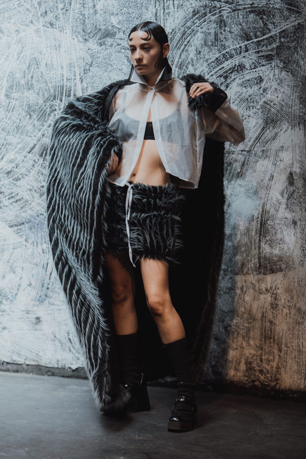Agoshida: APARICIONES: Inspirada en los sueños y los terrores nocturnos presentó una colección etérea, jugando con volúmenes y transparencias.