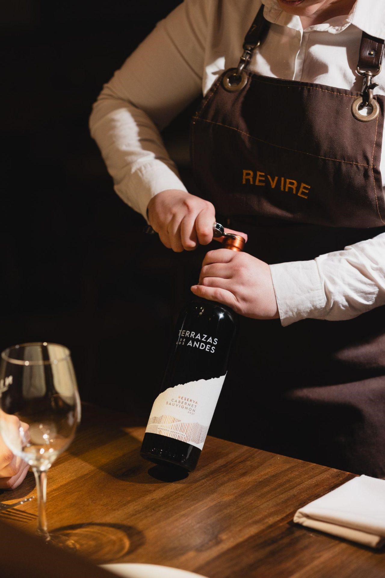 seleccionados, con etiquetas boutique y alta gama, cada vino es elegido y pensado para resaltar los sabores y realzar la experiencia de cada bocado. Además de su sofisticada selección de vinos, Revire Brasas Bravas ofrece en su barra una variedad de tragos clásicos y de autor, con sabores únicos.