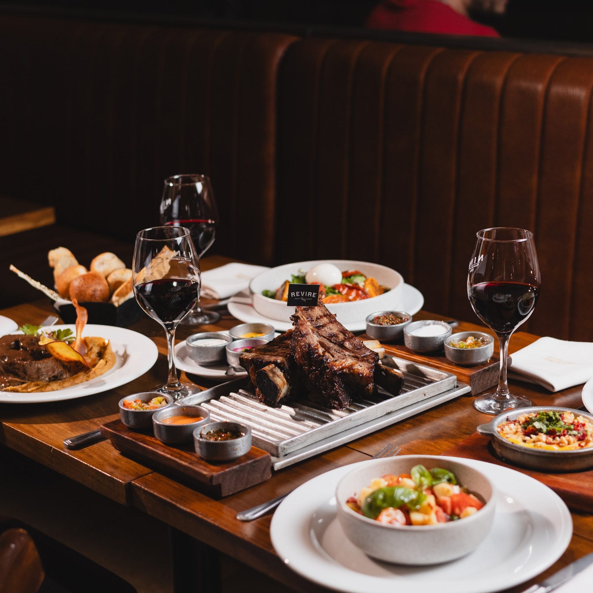 A pasos del Obelisco, Revire Brasas Bravas combina lo mejor de la parrilla argentina con una puesta en escena vibrante. Su imponente parrilla a la vista cautiva desde el primer momento.
