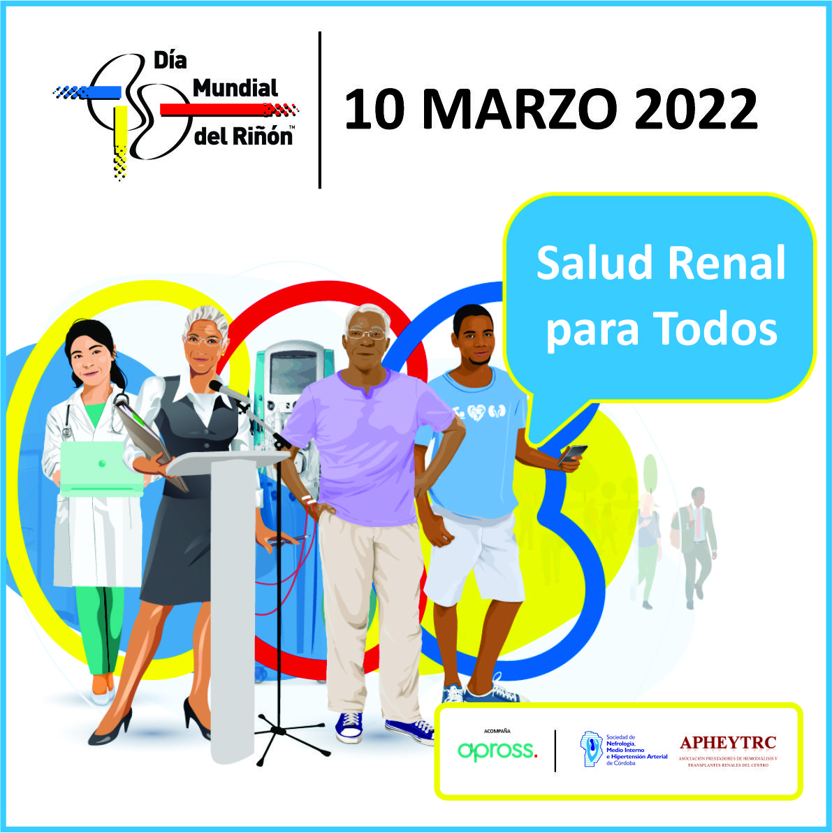 Las actividades de educación y control que se realizarán este jueves 10 de marzo en la capital y provincia de Córdoba están promovidas por APHEYTRC (Asociación de Prestadores de Hemodiálisis y Trasplantes Renales de Córdoba), la Sociedad de Nefrología y Tensión Arterial de Córdoba, y Apross.
