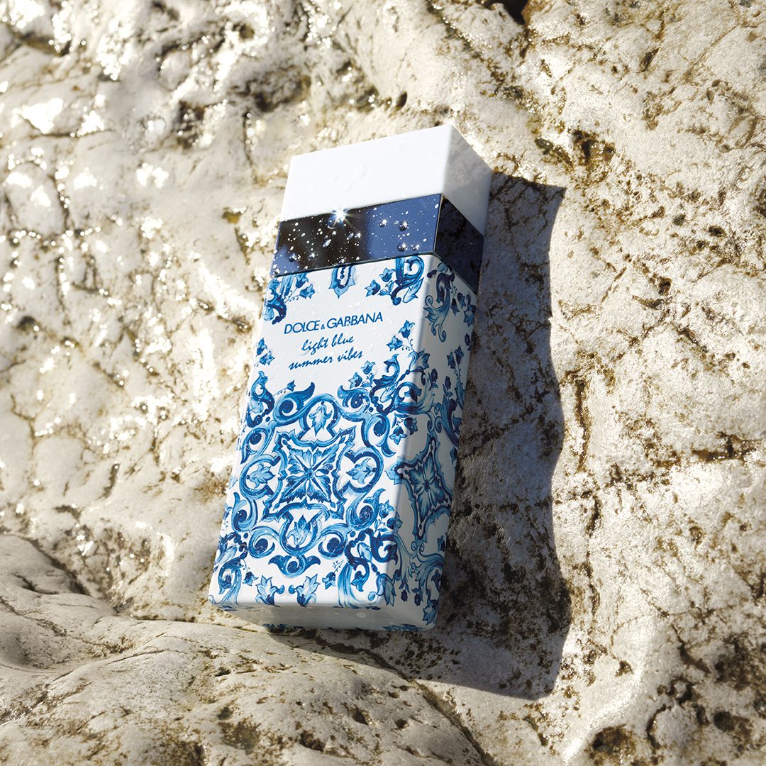 Las vacaciones italianas soñadas. La energía de un verano frente al mar. Dolce & Gabbana Light Blue Summer Vibes es una edición limitada envuelto en un estampado de mayólica inconfundible.