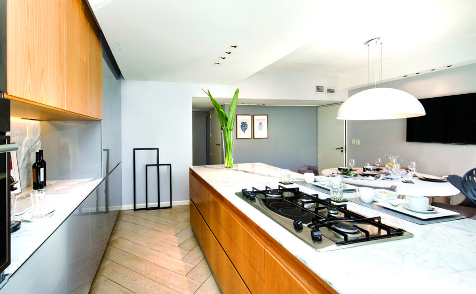 La iluminación es clave, resalta cada detalle. Para aprovechar y resaltar la luz que ingresa a la cocina, a los colores claros es mejor combinarlos con madera tanto en el piso como en los muebles de cocina.