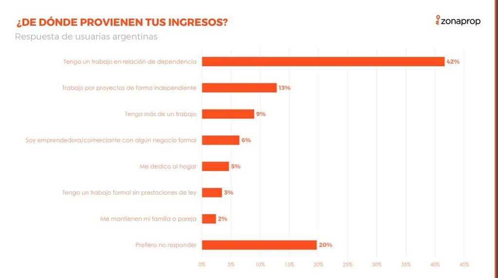 El portal líder de clasificados de real estate, Zonaprop, realizó una encuesta regional a las mujeres usuarias del sitio para conocer las tendencias en relación a la vivienda, con motivo del Día de la Mujer. Más de 2000 usuarias participaron desde Argentina, Brasil, México, Ecuador y Perú. Las mujeres que viven solas en Argentina son en su mayoría, mayores de 57 años mientras que solo un 11% son menores de 30 años.