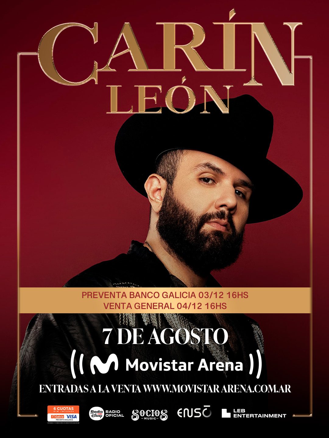 Carín León se ha consolidado como una de las figuras más influyentes de la música latina contemporánea desde el inicio de su carrera solista en 2018. Con un estilo que fusiona música regional mexicana con una amplia variedad de géneros —como pop, rock y otros sonidos globales—, el originario de Hermosillo, Sonora, ha ganado cuatro Latin GRAMMYs®, un GRAMMY® y múltiples certificaciones de diamante, oro y platino. Su versatilidad se refleja en colaboraciones estelares con superestrellas como Bon Jovi, Carlos Santana, Kacey Musgraves, Kane Brown, Maluma, C. Tangana y Camilo, entre otros, y en presentaciones en escenarios internacionales incluyendo el Grand Ole Opry, Coachella y Viña del Mar, donde obtuvo las gaviotas de Oro y Plata. En 2025, batió récords de asistencia en el RODEOHOUSTON y llevó su música a Europa con el “Boca Chueca Tour” y en 2026 se convertirá en el primer artista latino en presentarse en la Sphere de Las Vegas.