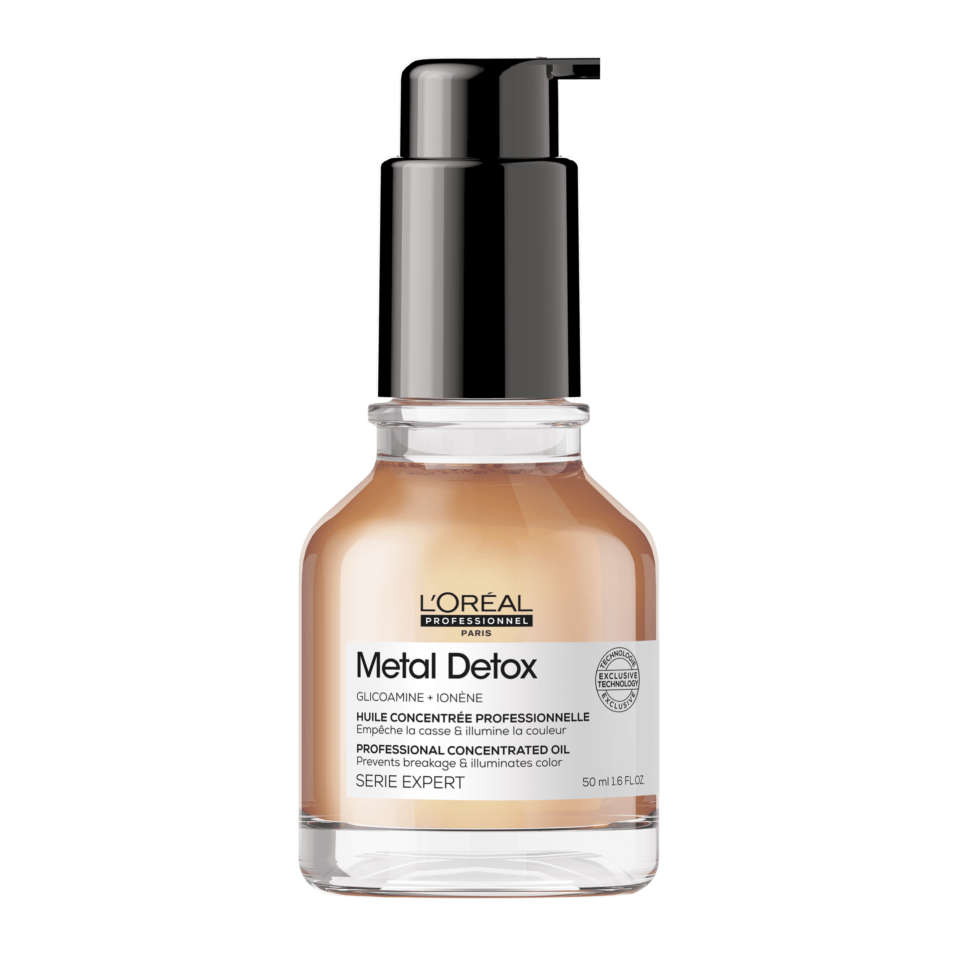 Este nuevo lanzamiento proporciona todo el poder de Metal Detox ahora en un aceite concentrado de uso diario y altamente efectivo. Combinando el poder de Glicoamine, una tecnología exclusiva y una molécula patentada que puede entrar en los mechones de cabello y neutralizar los metales para tratarlos desde adentro.