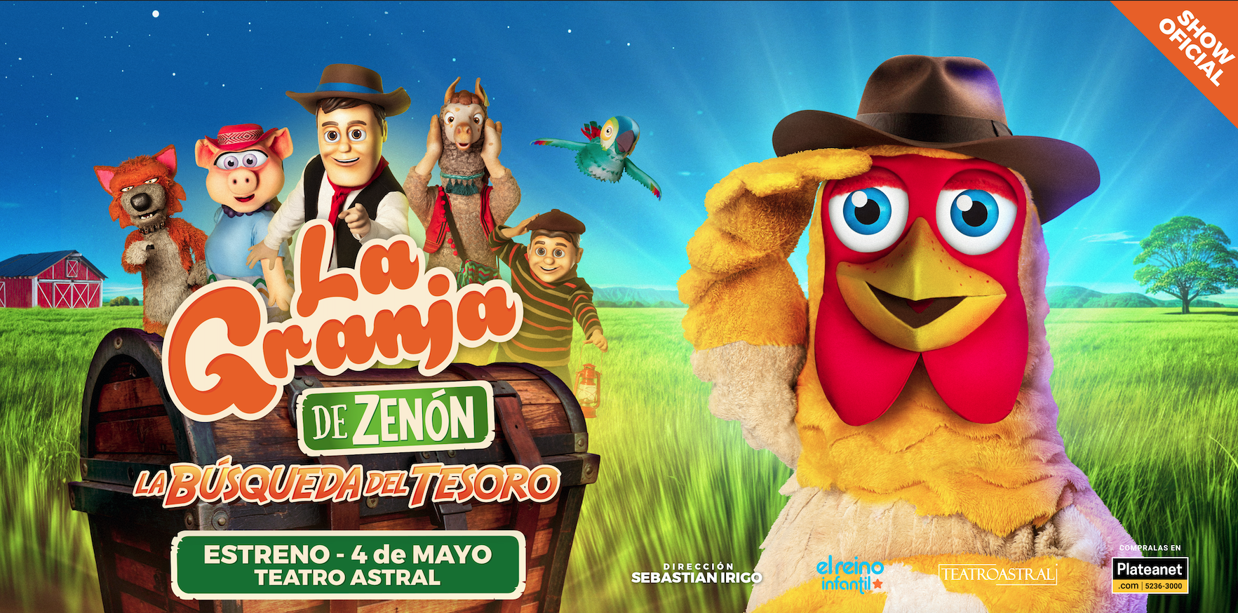 A partir del próximo sábado 4 de mayo, el fenómeno infantil «La Granja de Zenón”, vuelve al Teatro Astral con una nueva y emocionante aventura: “La búsqueda del Tesoro”. Un espectáculo 100% nuevo y renovado, que promete llevar a grandes y chicos a lugares desconocidos y misteriosos. Esta propuesta, -que marca el inicio de la temporada teatral infantil en Buenos Aires- promete ser una experiencia inolvidable que te hará reír, cantar y emocionarte en familia.