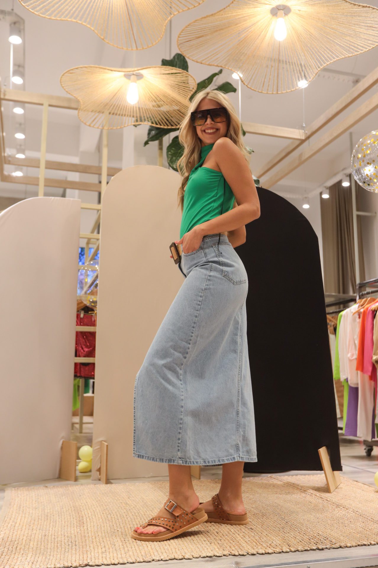 Para esta temporada, la novedad es la presentación de Fluir, “una cápsula nueva donde nos arriesgamos a ir poquito más allá, con más variedad de prendas en denim y lino”.