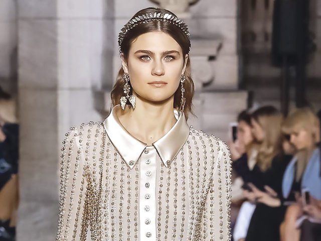 También llevó pendientes de oro blanco y diamantes, así como anillo de oro blanco, diamantes y zafiro amarillo de la colección High Jewelry de Louis Vuitton.