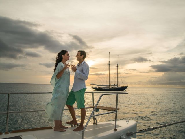 1 El paseo en catamarán, acariciados por la suave brisa del Mar Caribe, durante el atardecer es
