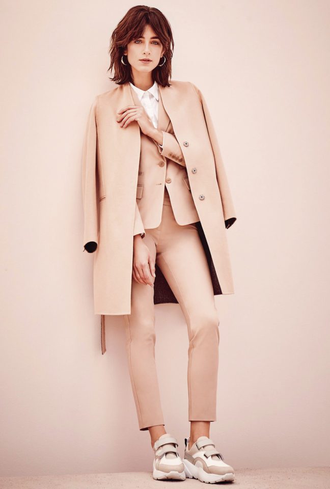 Presente tanto en las formas de las prendas, con estructura y con la justa cantidad de detalles (tapados, totes, botinetas, buzos), como en las combinaciones tono sobre tono y el total look de un solo color (off-white, camel, rojo y gris).