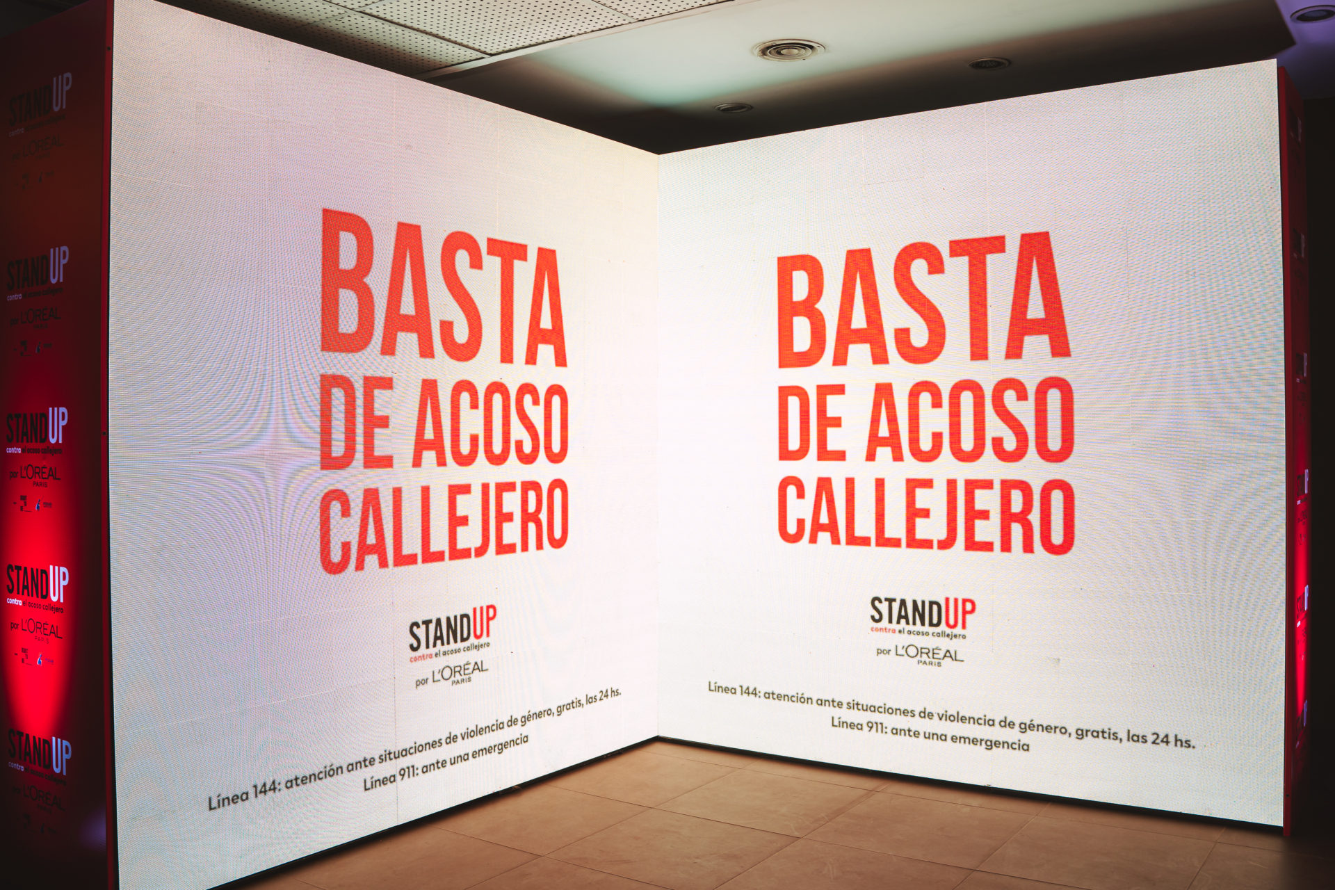 Este 24 de agosto L’Oréal Paris en el marco de su iniciativa “Stand Up contra el Acoso Callejero”, de L’Oréal Paris, llevó a cabo un encuentro e iluminó el Puente de la Mujer y la Legislatura porteña con los colores de la campaña, invitando a la ciudadanía a no mirar para otro lado, elevar su voz contra el acoso callejero, uno de los tipos de violencia de género más naturalizados en Argentina y en el mundo, y llamarla a la acción.