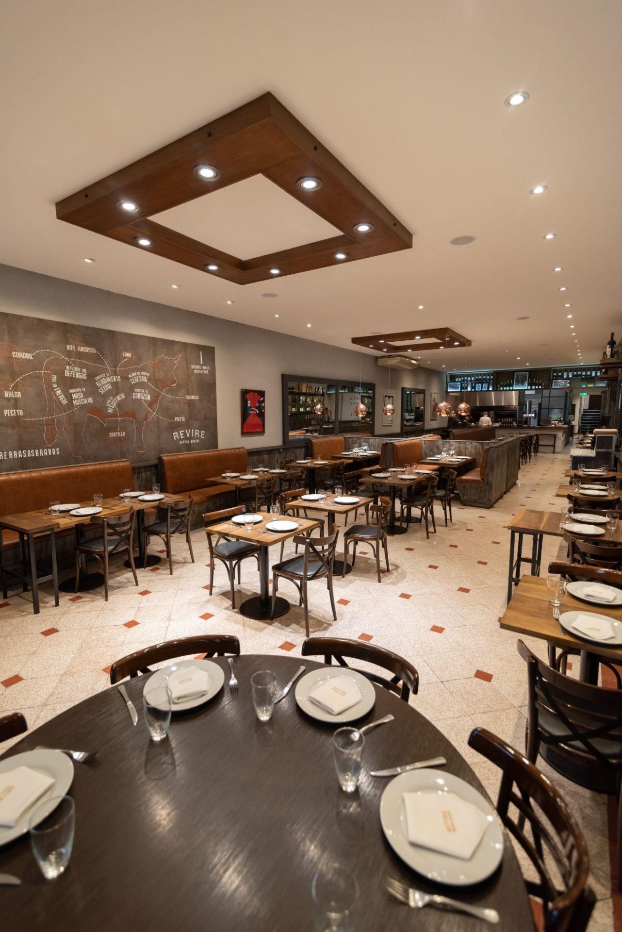Las joyas del menú son el Asado Especial Revire, una tierna costilla de novillo braseada durante 4hs y el Ojo de Bife Revire, 600 gr de corte de novillo con hueso. Pero no solo se destaca por sus carnes premium, su menú diverso y tentador está especialmente diseñado para satisfacer todos los gustos con sabor y excelencia, con platos gourmet como el Pastel de Cordero al Coriandro, Bondiola de Cerdo Braseada, Raviolones de Cordero y también sus destacados veggies como la sartén de portobellos, el mix de vegetales asados, su variedad de pastas caseras y ensaladas para todos los gustos, entre otros.