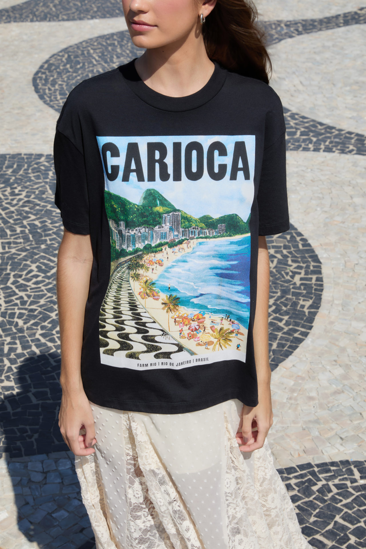 Carioca toma a Río como inspiración central para crear looks pensados para moverse del paseo marítimo a la ciudad sin escalas. Sedas protagonistas, estampados con significado y transparencias para usar tanto en la arena como en la calle componen un recorrido estético que imprime al guardarropa una identidad profundamente carioca. Con ese talento natural para arrancar el día en la playa y terminarlo en el samba, la colección recorre distintas ocasiones y reafirma el lema de FARM: vestir alegría en cualquier lugar del mundo.