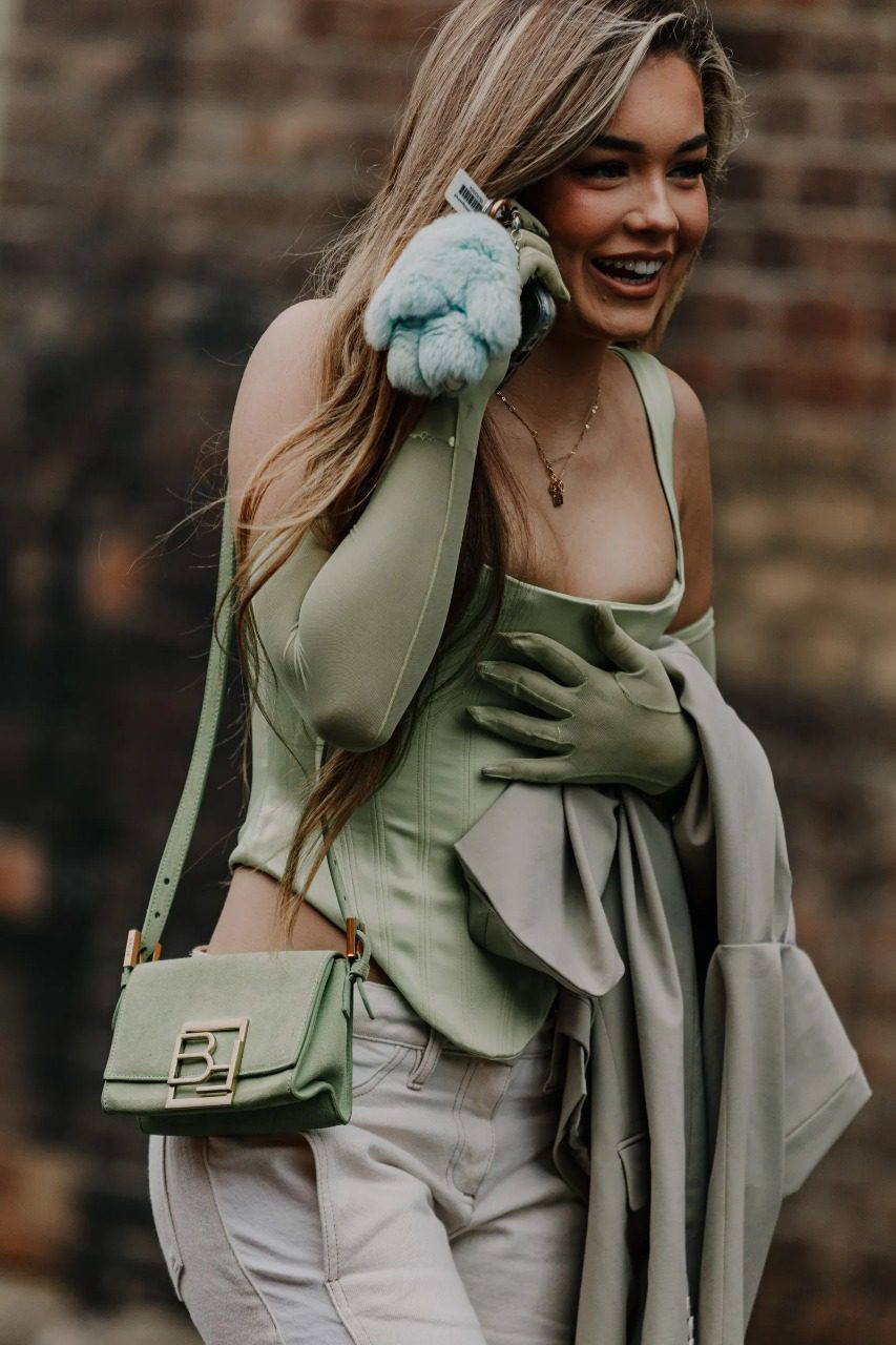 Prueba de que no necesitamos ningún vestido largo para combinar el accesorio de moda por antonomasia que está marcando este 2022 es este look visto en las calles australianas en el que la insider apuesta por unos jeans de aspecto desgastado. Para dar un toque todavía más cool al estilismo, apuesta por un corsé armado en color verde y un bolso a juego. Atención, Generación Z, este será vuestro preferido.