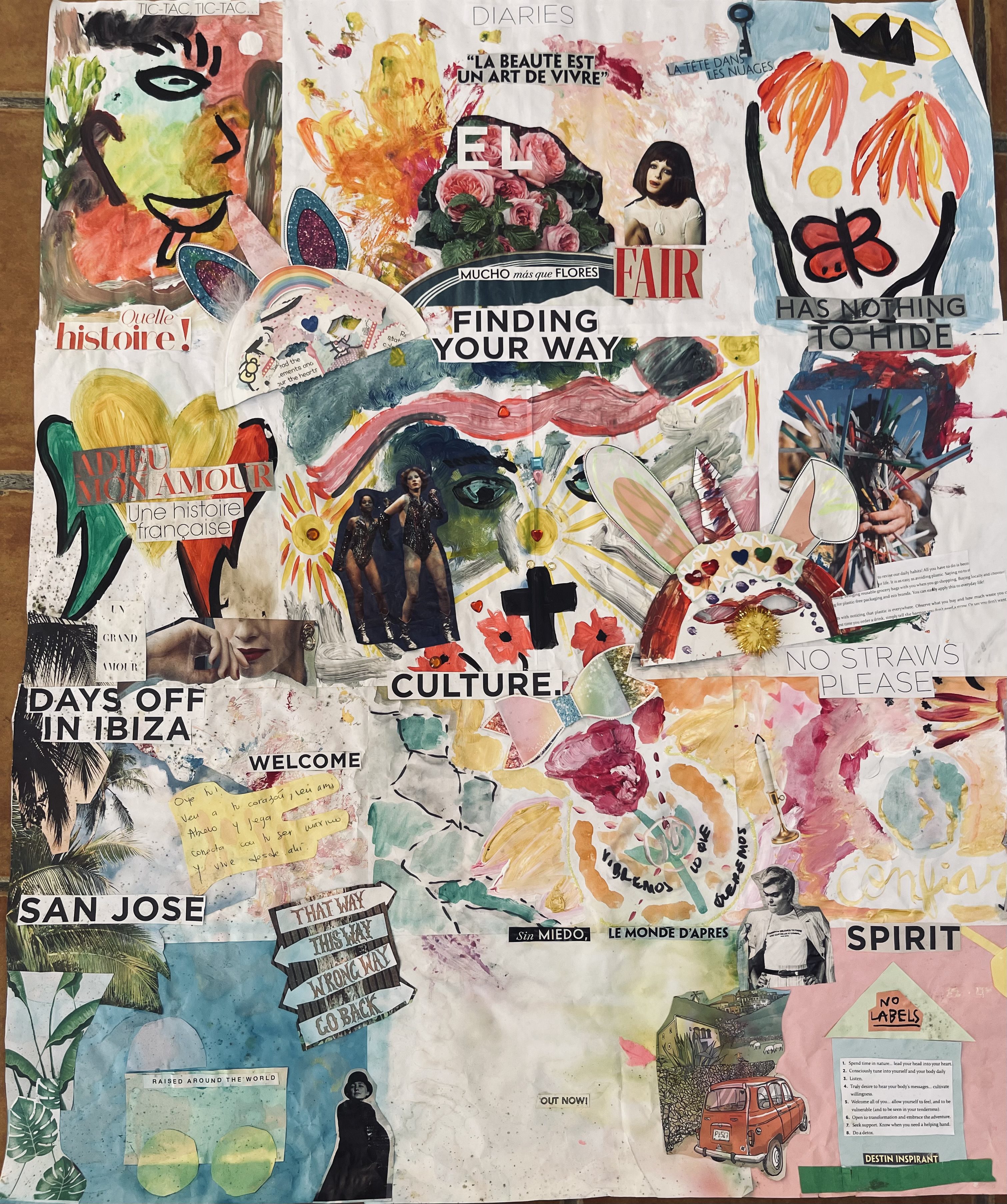 Portadas de las mejores revistas, campañas, desfiles, fotógrafa, y acaba de debutar como actriz de cine. Además en plena pandemia, en sus días en Ibiza, desplegó su nuevo arte, los collages, si si, se inspira en dibujos de sus hijos recortes de revistas de todo el mundo son quienes la inspiraron junto con ibiza a que Jime cree estos collage moodboarding de su propia vida, al momento colecciona 12 collages únicos e irrebatibles.