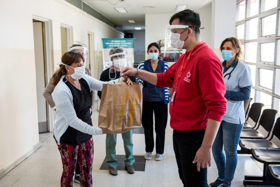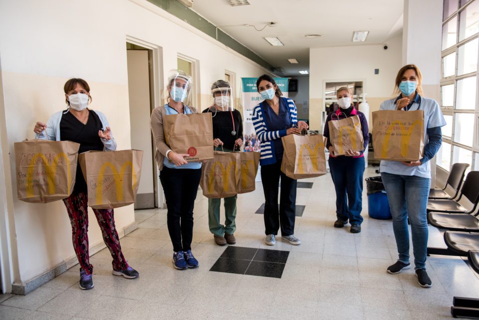 McDonald’s realizó una alianza con la Cruz Roja Argentina para acompañar a voluntarios y personal de salud que combate al Coronavirus. Desde el comienzo de la pandemia, la Cruz Roja viene desarrollando un plan de acción especial en todo el territorio nacional con el objetivo de disminuir el contagio de COVID-19 en Argentina, aliviar el sufrimiento de las personas afectadas y sus familiares y contribuir a reducir el impacto de la emergencia en el país. Una de sus líneas de estratégicas de intervención en este contexto es la Atención Sociosanitaria, que brinda soporte al sistema de salud público en articulación con el Estado nacional, contribuyendo al montado, puesta en funcionamiento y coordinación de hospitales de campaña.