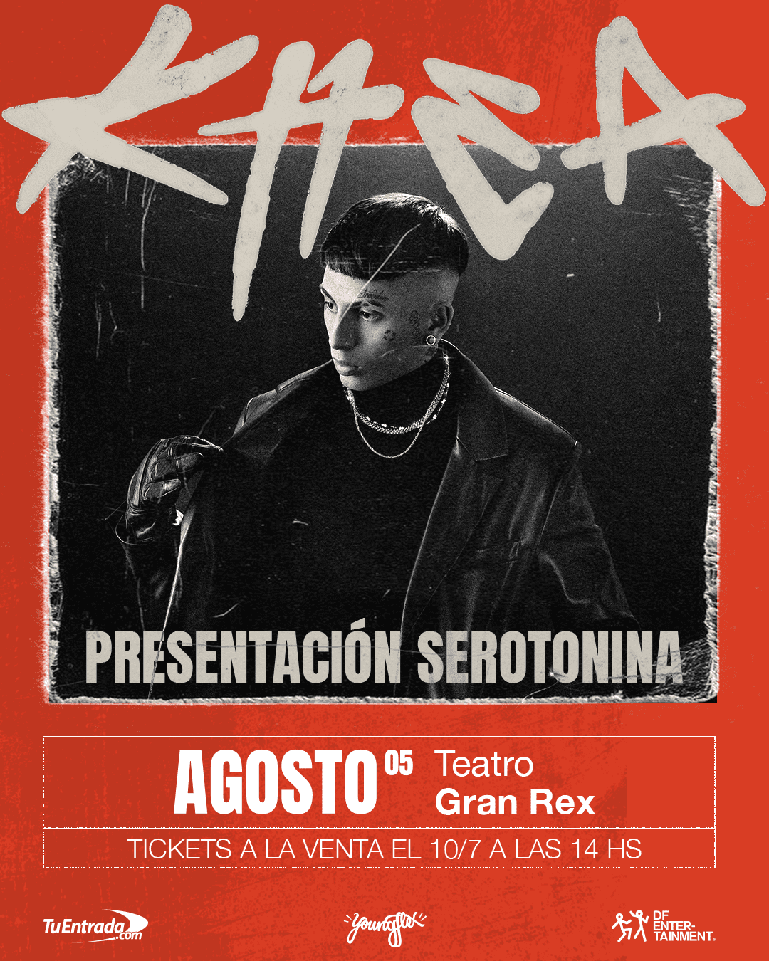| Desde marzo, cuando Khea lanzó Serotonina, su primer trabajo discográfico que representó su regreso por la puerta grande a la música después de 8 meses de ausencia, los fans del músico esperaban con ansias el anuncio de un show que lo volviera a colocar sobre el escenario. Para todos los que celebraron el excelente primer trabajo discográfico de uno de los más grandes del trap de su generación, la espera terminó: Khea confirmó que dará un show en el teatro Gran Rex el 5 de agosto, con producción de DF Entertainment y las entradas se podrán adquirir a partir del lunes 10 de julio a las 14 hs, únicamente por Tu Entrada. Esta noticia tan anhelada por los seguidores del artista lo encuentra ya del otro lado de un período que se alejó de los escenarios y en el que realizó un viaje introspectivo que lo conectó como nunca antes con la música. Serotonina –el título alude al neurotransmisor responsable por regular los estados de ánimo– retrata esa transformación y la narra desde las letras. El disco fue producido por Nobeat y masterizado por Mariano Bilinkis. El día del lanzamiento Khea les mandó un mensaje a sus fans en sus redes: “espero que les guste, les encante, les represente y lo amen tanto como yo, les doy mi corazón y alma en esta obra”. Toda la síntesis de Serotonina lo encuentra explorando géneros que hasta el momento no habían estado en su repertorio, en las trece canciones que lo conforman se combinan canciones de reggaetón, salsa, rock alternativo y bachata. El show en el Gran Rex seguramente lo encuentre estrenando estas novedades así como haciéndole honor a los éxitos que lo consagraron mucho antes de este último lanzamiento. El disco también cuenta con colaboraciones de Tiago PZK en “Para amarte a tí”, Asan en “Interluv RCP” y Milo J en “Nunca voy sólo”, un verdadero himno sobre la incondicionalidad. Khea siempre forjó un camino muy ligado a las principales figuras de la escena, y solo cabe esperar qué sorpresas trama para el show. El 5 de agosto es una oportunidad imperdible para formar parte del regreso de este pionero del trap que alcanzó un momento de madurez y de síntesis y acumuló ganas de volver a hacer de las suyas en vivo. |