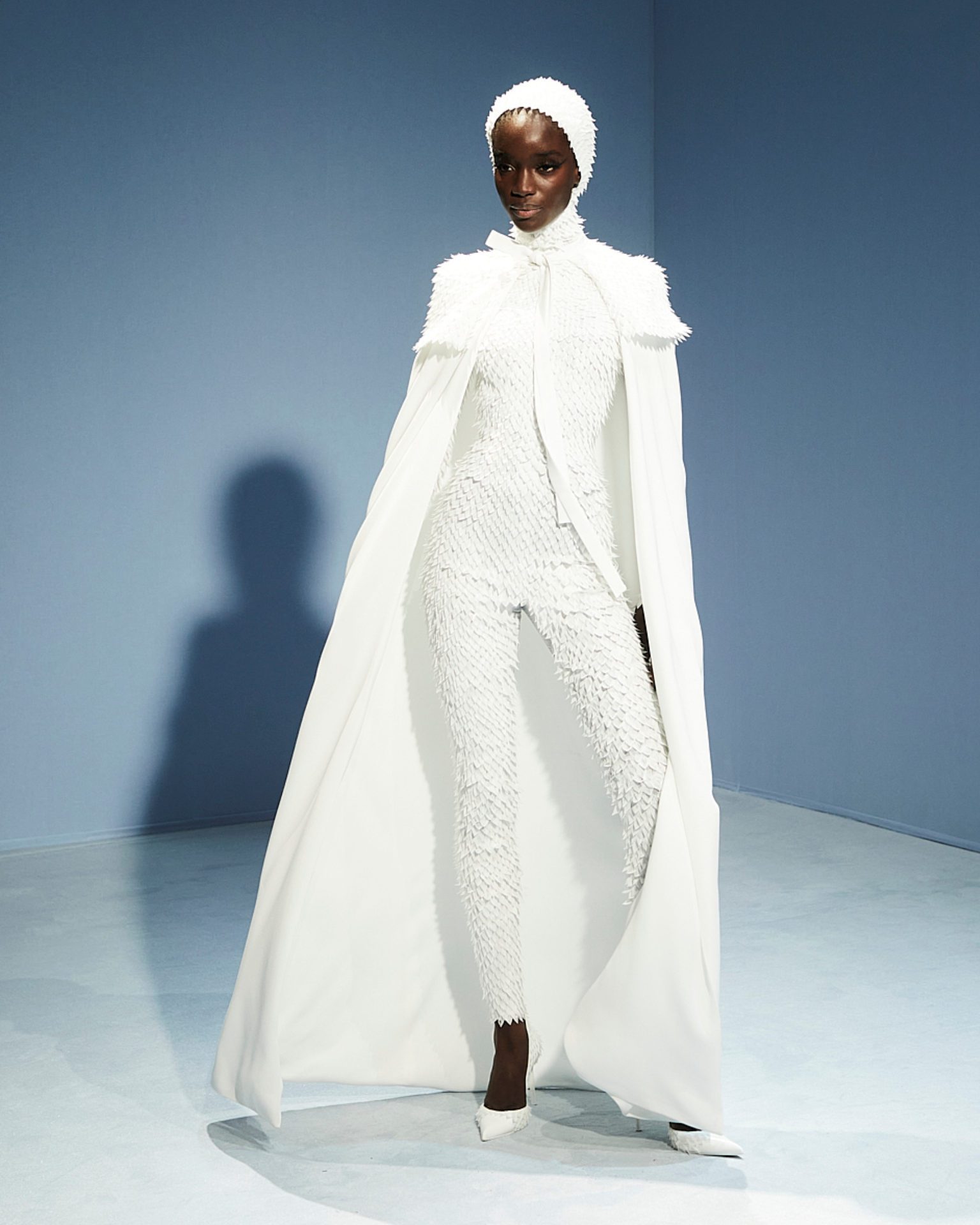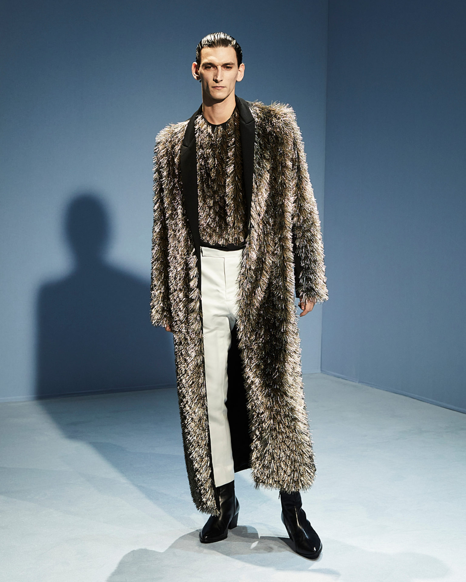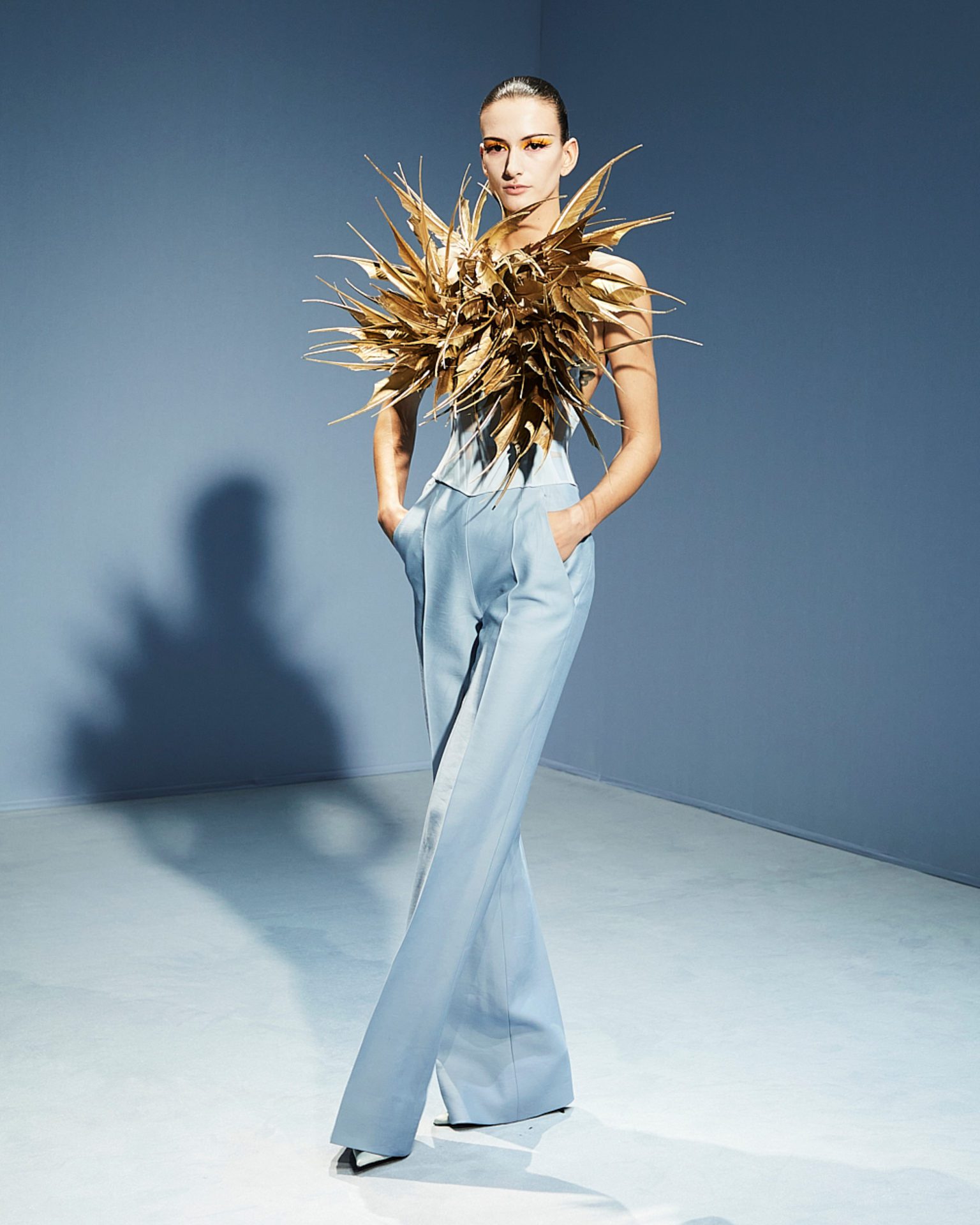 Aquí, dos voces se mezclan y se funden para alcanzar un unísono sobrecogedor, abriéndose hacia un intenso y melodioso grito de libertad*. Como dice Haider Ackermann: «Puesto que las prendas forman un lenguaje, deben estar rodeadas de silencio para que pueda oírse el mensaje que transmiten»