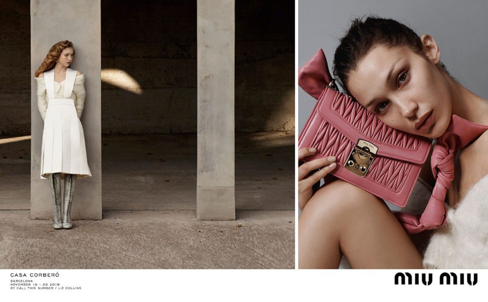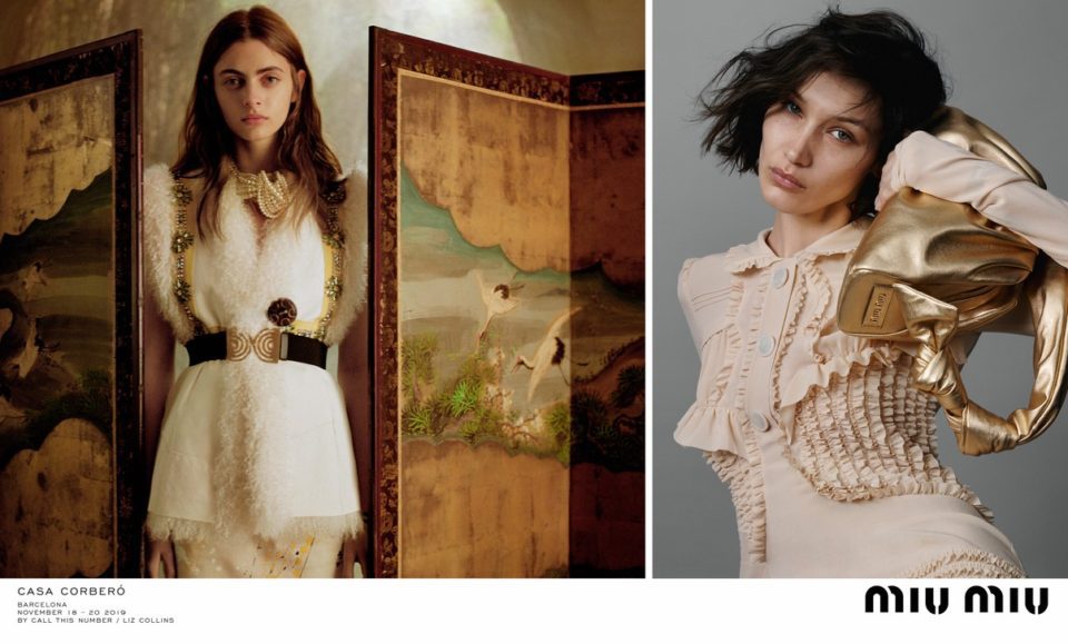 Organizado en la Casa Corberó, MIU MIU captura la yuxtaposición entre libertad creativa y autoexpresión, a la disciplina regimentada de la forma. En las afueras de Barcelona, las chicas Miu Miu, incluidas Bella Hadid , Lila Moss, Tang He y Kaila Wyatt.