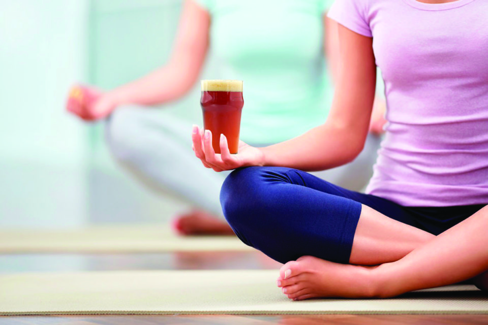 “Beer yoga” es una nueva modalidad de esta disciplina, en la que sus practicantes pueden beber cerveza mientras se ejercitan. No sólo el interior de la botella se involucra en esta práctica, ya que se utiliza el vidrio o lata para incluirlos a los ejercicios. Esta iniciativa invita a quienes se sientan en un bar a beber y para entusiasmarlos a hacer algo más productivo que sólo consumir alcohol, y de esta manera, poder combinar la filosofía del yoga con la alegría de beber cerveza.
