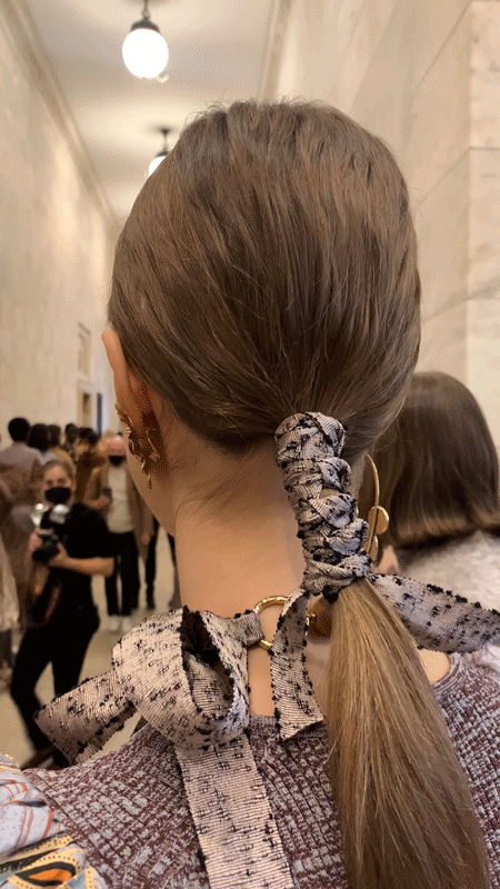 Llevar el pelo recogido hacia atrás nunca marcó tanto estilo. En Sergio Hudson, la peluquera Naeemah LaFond realizó coletas con alambre dorado en la base y una cascada de rizos voluminosos. Con eco en las telas, las elegantes coletas bajas de Ulla Johnson iban envueltas en tejidos estampados de la colección, por obra del peluquero Bob Recine. Lo mismo en PatBo, donde Lacy Redway sujetó sus colas de caballo con diferentes detalles, de cintas de terciopelo a pañuelos con flores de acuarela.